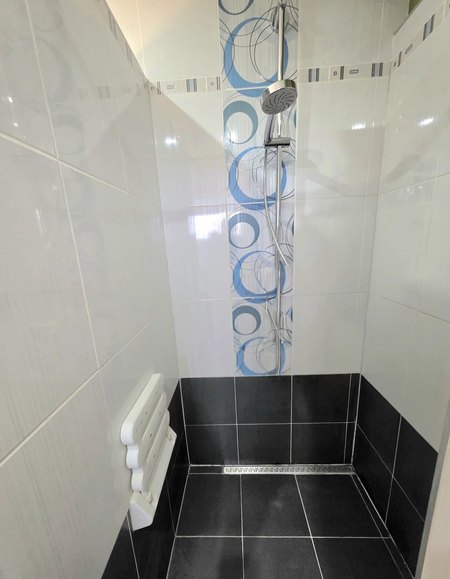 Au premier étage, vous trouverez deux chambres et une salle de douche avec toilette.