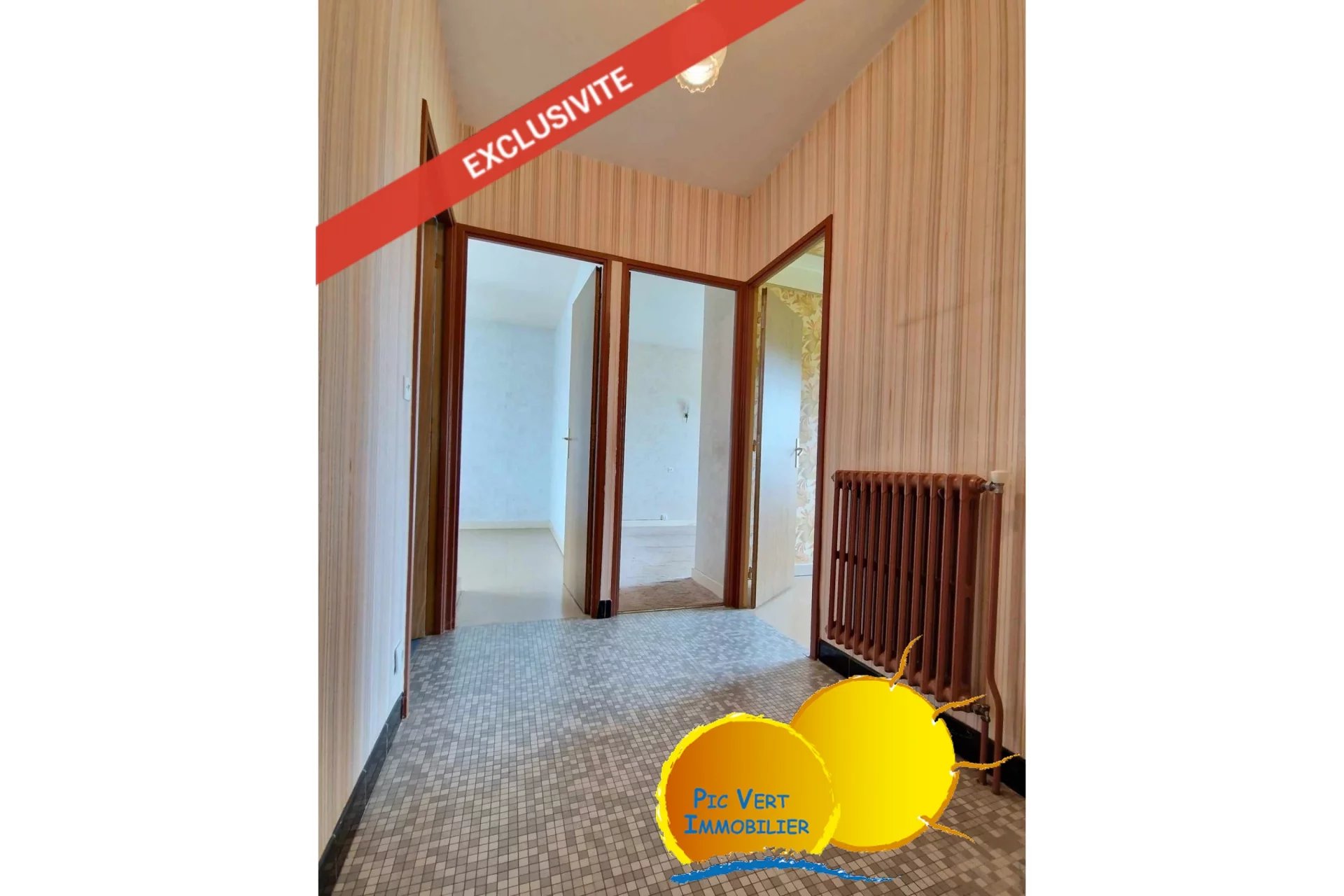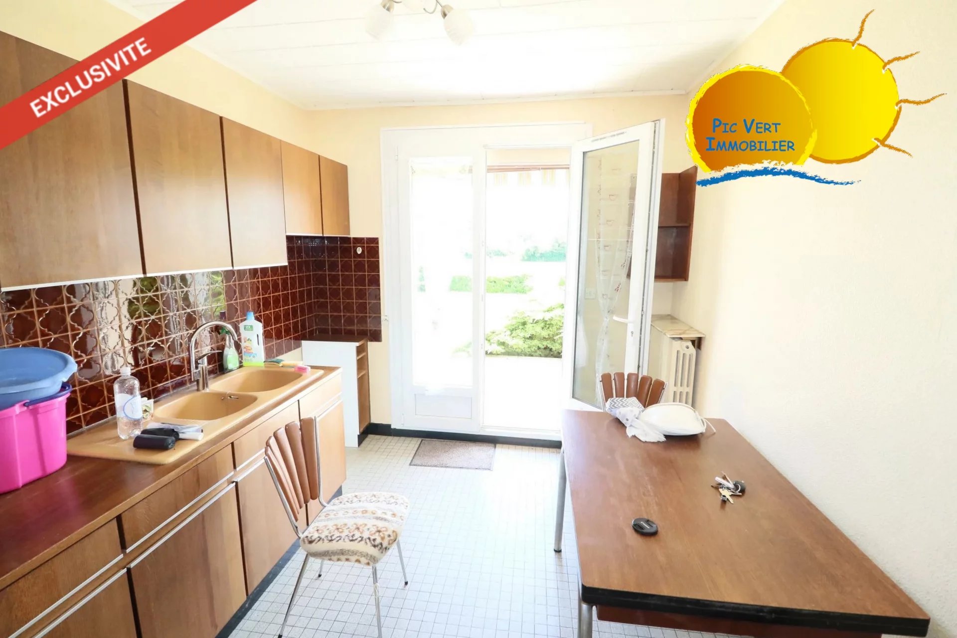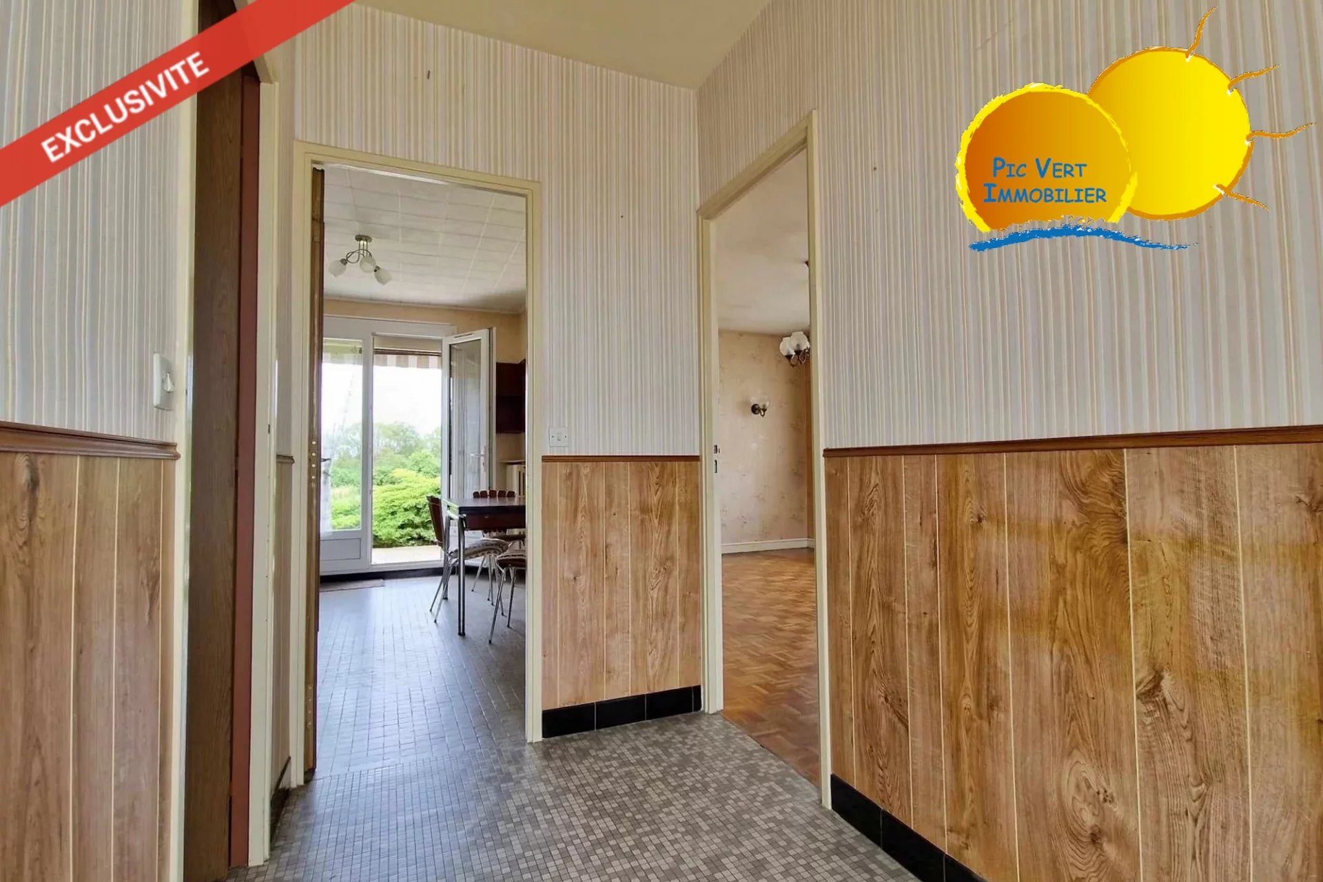 au rez-de-chaussée surélevé ; une entrée, une cuisine avec un accès terrasse donnant sur le jardin, un salon/séjour ouvert avec parquet chêne, un WC, un dégagement, une salle d’eau, 3 chambres dont une avec placards et son point d’eau.