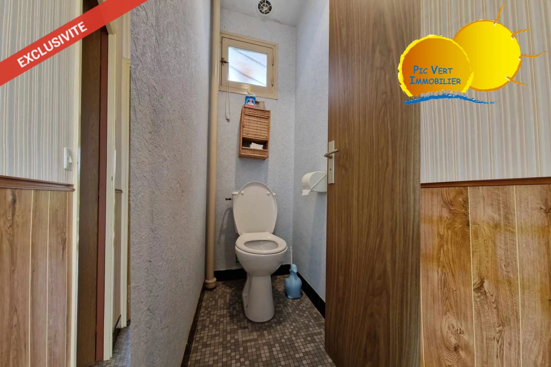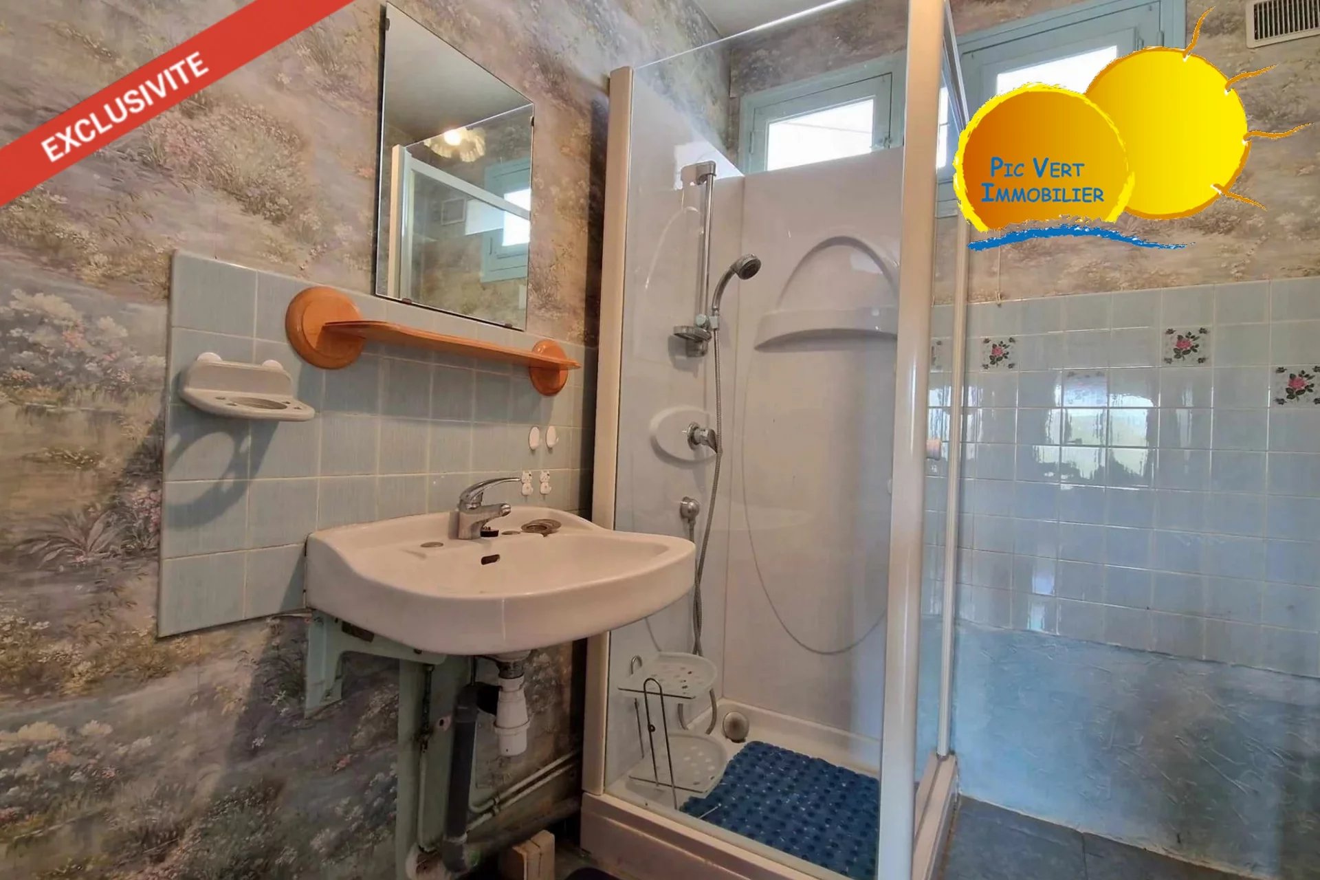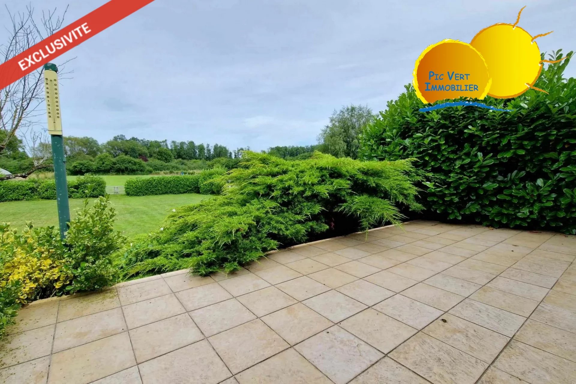 au rez-de-chaussée surélevé ; une entrée, une cuisine avec un accès terrasse donnant sur le jardin, un salon/séjour ouvert avec parquet chêne, un WC, un dégagement, une salle d’eau, 3 chambres dont une avec placards et son point d’eau.