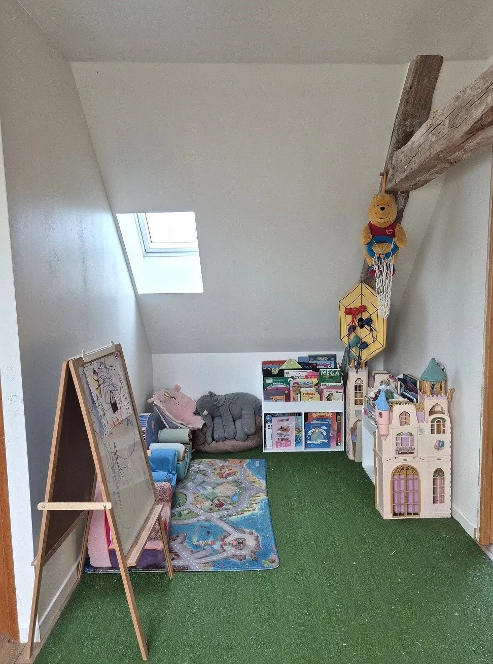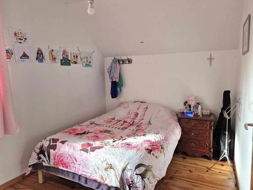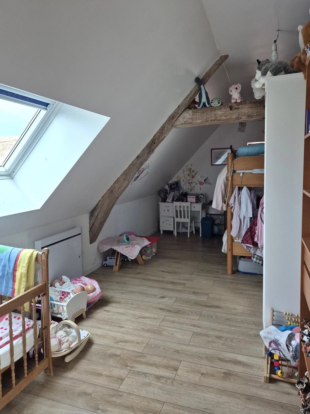 A l'étage avec accès par le séjour : un palier, trois chambres, une pièce à terminer pour wc.