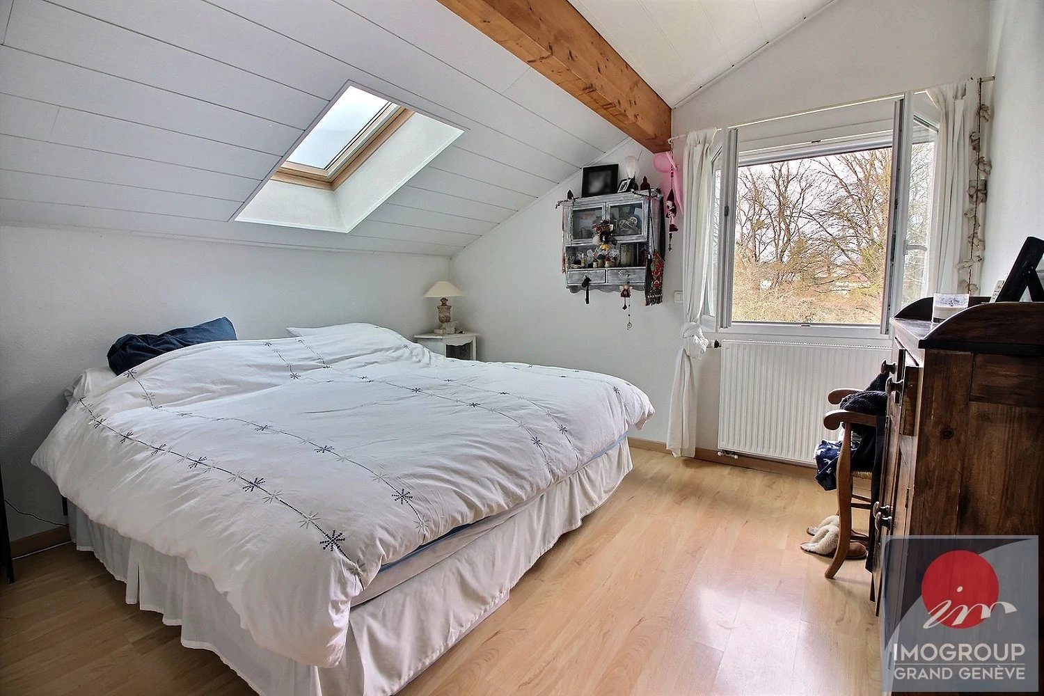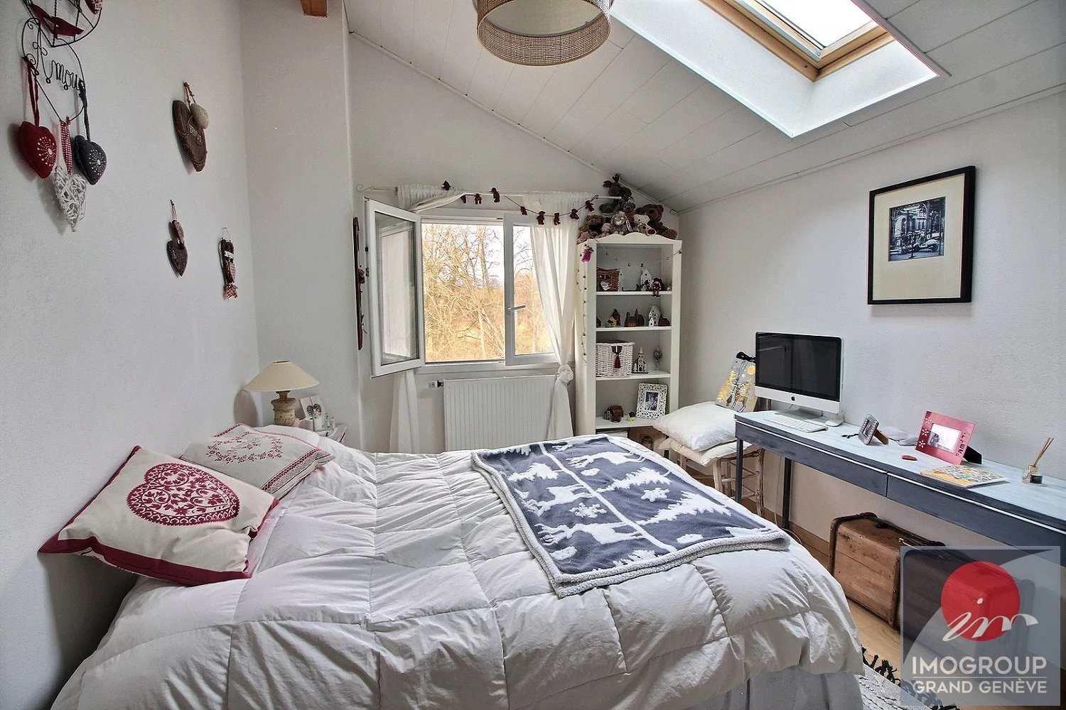 À Veigy-Foncenex, au coeur d'un quartier calme en lisière d'une zone naturelle protégée, cette maison de 126 m² s'implante sur un terrain arboré de 728 m². Elle se compose d'un vaste séjour baigné de lumière avec accès direct à la terrasse, d'une cuisine équipée, de quatre chambres dont une en rez-de-chaussée, ainsi que d'une salle de bains, deux WC et une buanderie.