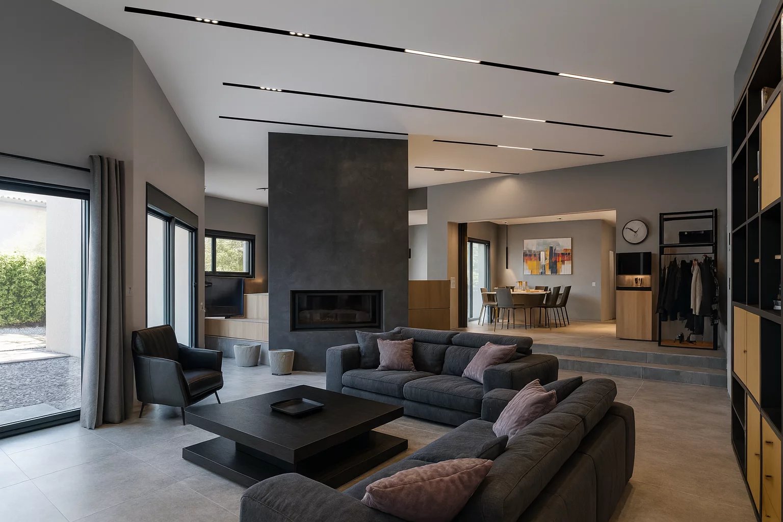 Dès l'entrée, découvrez une vaste pièce de vie lumineuse et déplafonnée de 85 m2, composée d'un salon chaleureux avec double cheminée, et d'une cuisine ouverte entièrement équipée. Cette pièce donne sur une véranda utilisable toute l'année, offrant une continuité naturelle vers l'extérieur.