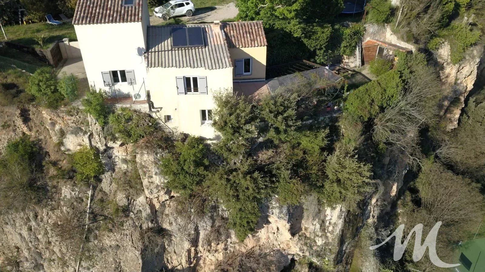 Située à Barjols, maison de 120 m² environ sur 3 niveaux sur un terrain de 1200m² au calme avec une vue dégagée sur les collines à flanc de falaise.