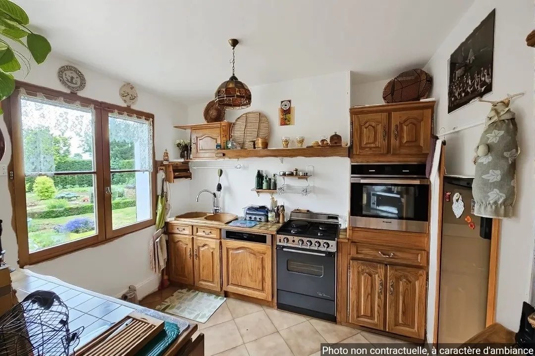 Maison d'habitation de plain pied comprenant au rez-de-chaussée : entrée, cuisine équipée ouverte sur le salon-séjour avec cheminée, une chambre, salle de bains, w-c, buanderie, cellier et garage.