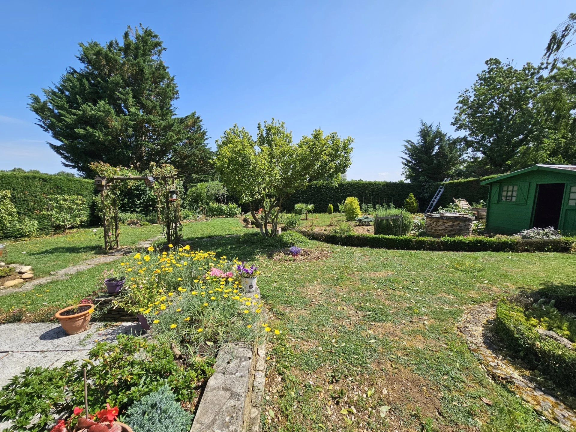 Le tout sur environ 1000 m2 de terrain clos et arboré avec terrasse.