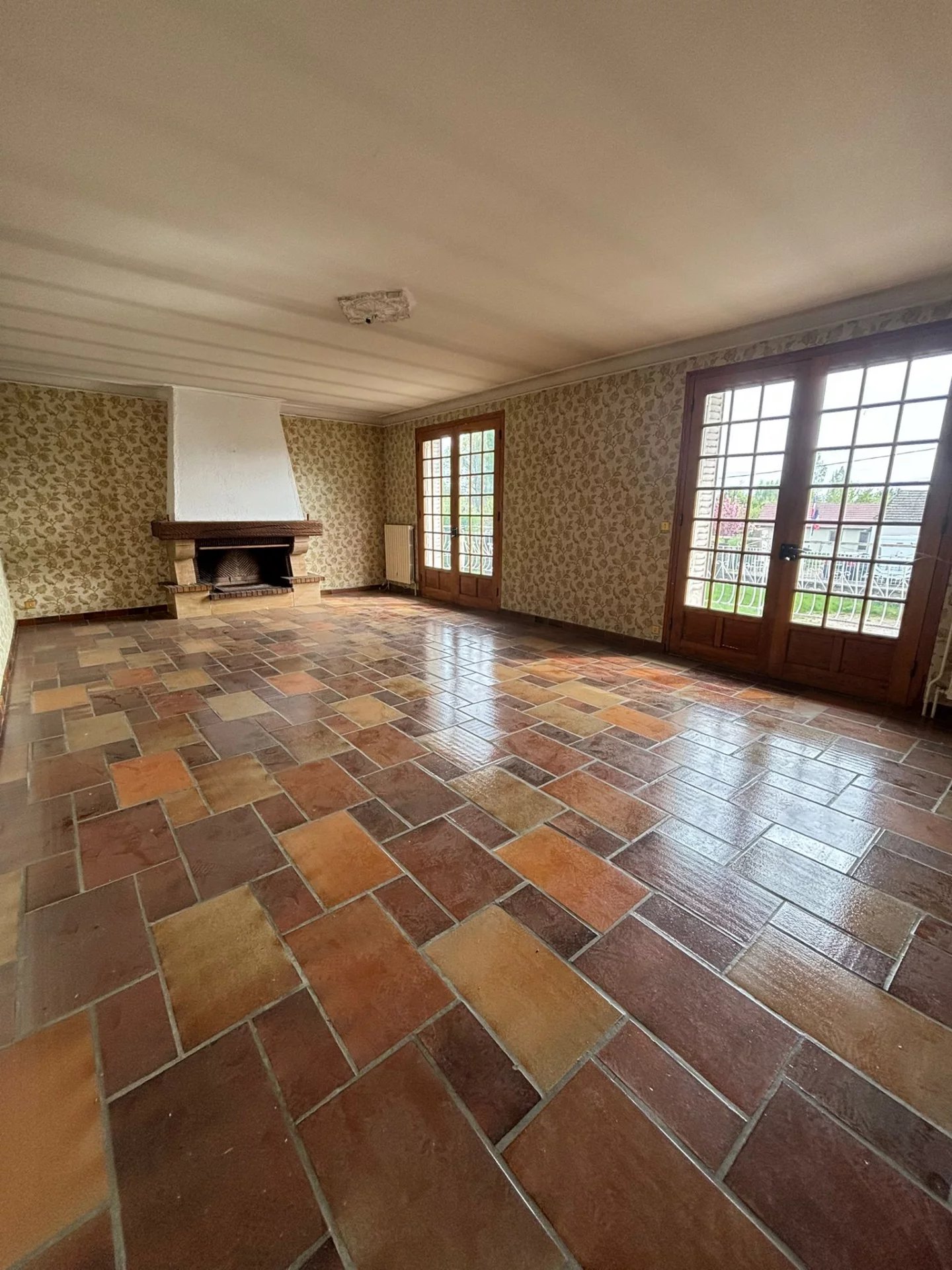 Cette maison à rénover se compose au premier niveau d'une entrée desservant une cuisine indépendante et un salon-séjour spacieux et lumineux donnant sur la terrasse.