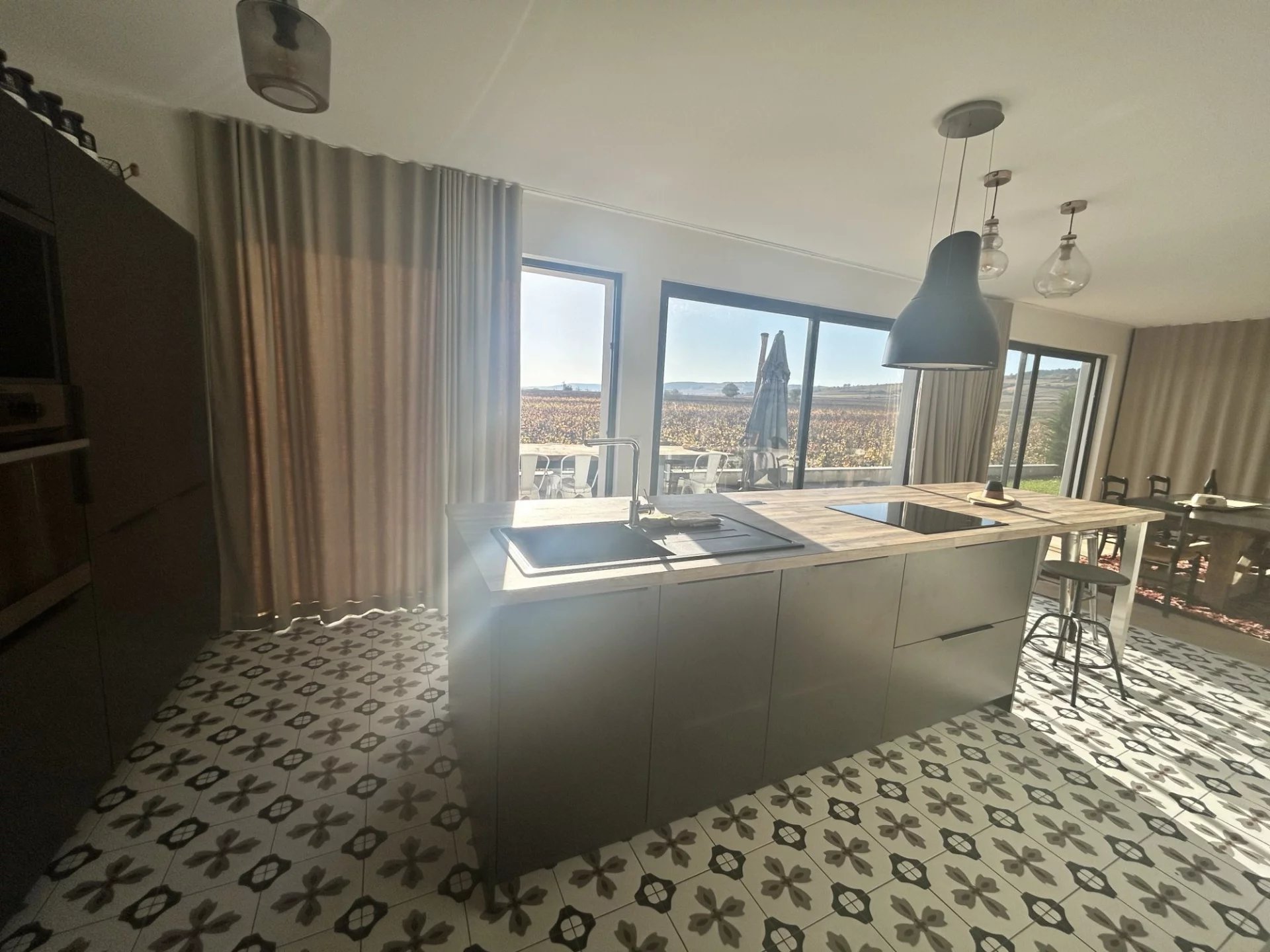 549 000 €Beaune, quartier calme avec vue panoramique sur les vignes et très proche centre ville, superbe maison de plain pied sur terrain clos de 755m² comprenant entrée, wc, grande cuisine équipée ouverte sur séjour (parquet) avec grandes baies vitrées au sud et à l'ouest. 2 chambres, SDB. A l'étage grande suite parentale avec dressing, SDB (baignoire/douche/ wc). Chaufferie, buanderie, cave et garage. Cour, jardin avec piscine.
