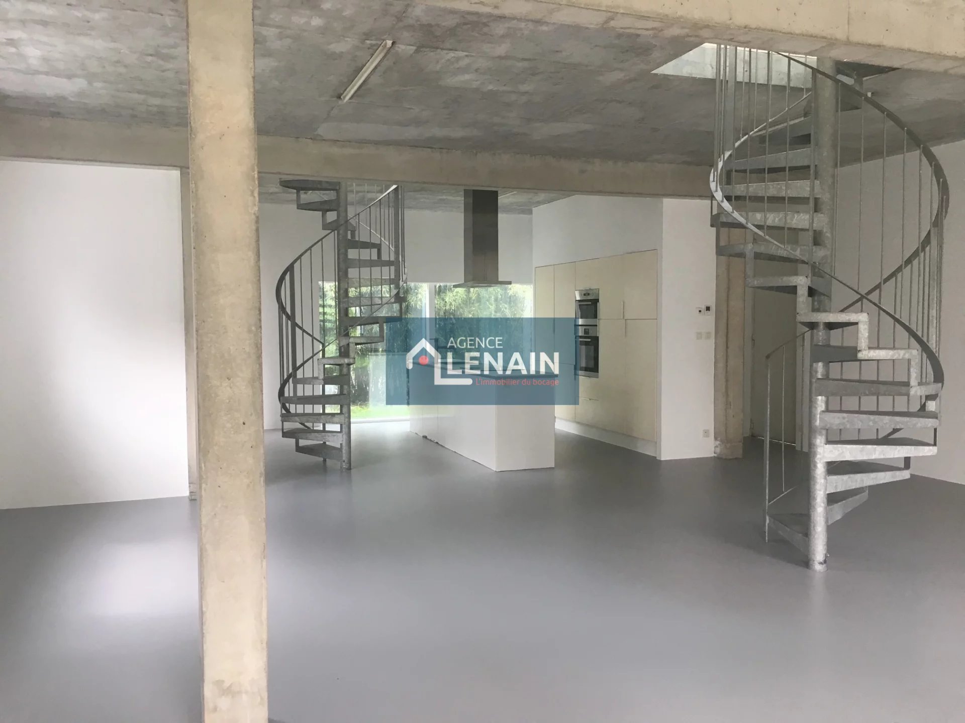Maison d'architecte contemporaine de 140m2 : Comprenant hall d'entée , salon séjour, cuisine aménagée & équipée , lingerie, WC , A l'étage une spacieuse suite parentale , puis deux autres chambres confortables avec salle d'eau moderne partagée .