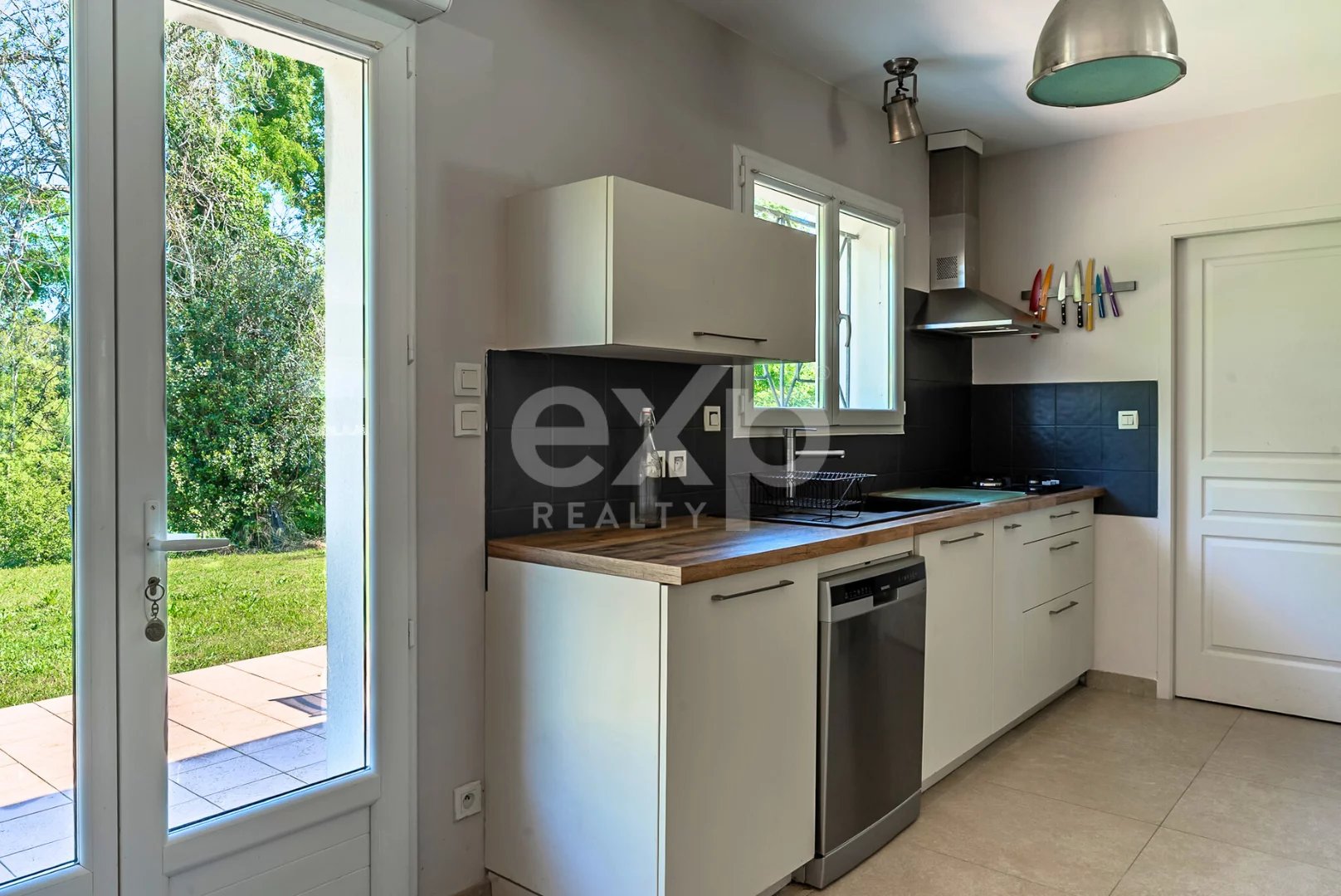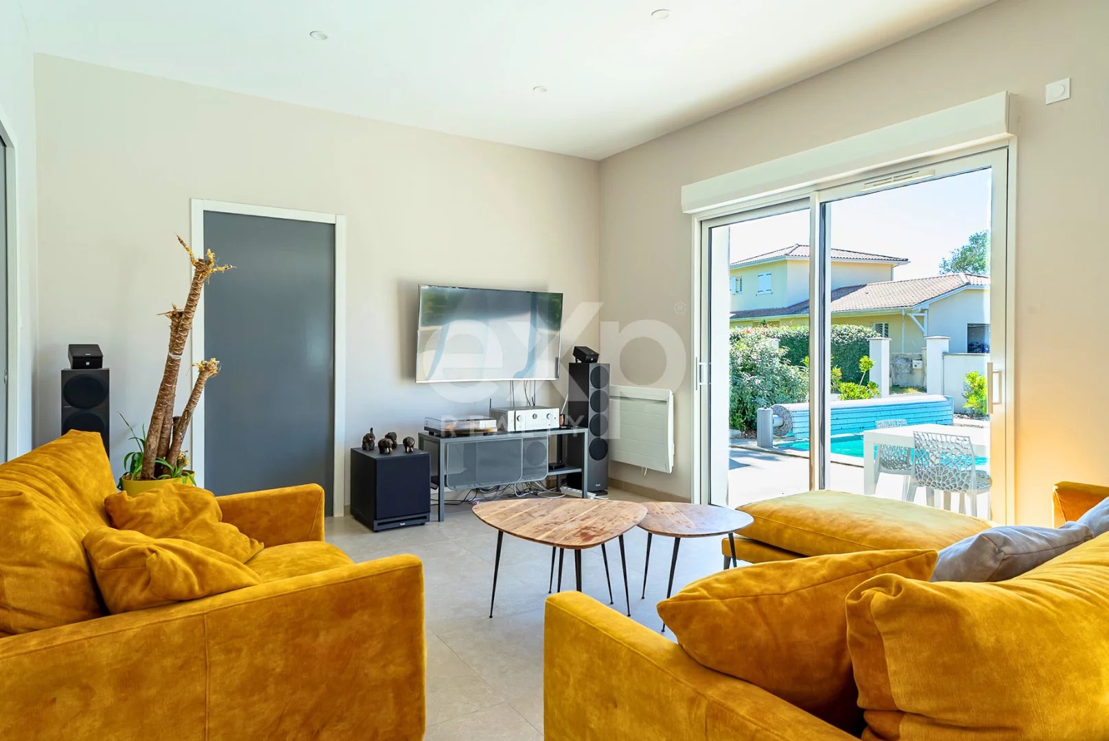 À l'intérieur, vous trouverez une cuisine ouverte sur le séjour, idéale pour les repas conviviaux en famille ou entre amis. Les grandes baies vitrées permettent une vue imprenable sur le jardin et la piscine, donnant une sensation de bien-être et de sérénité. Chaque pièce est conçue pour offrir une atmosphère accueillante et chaleureuse, reflétant un style moderne et élégant.
