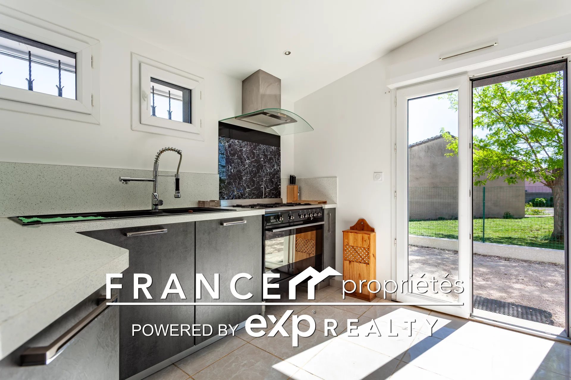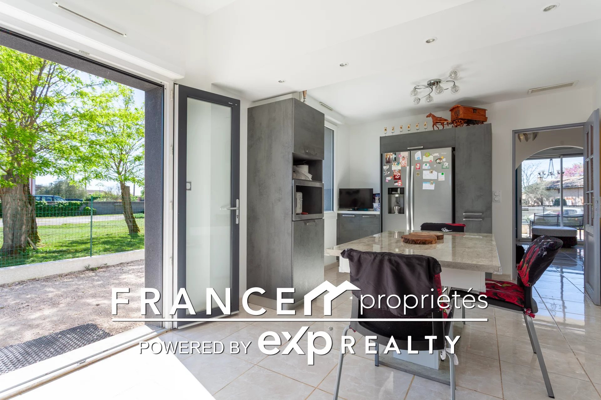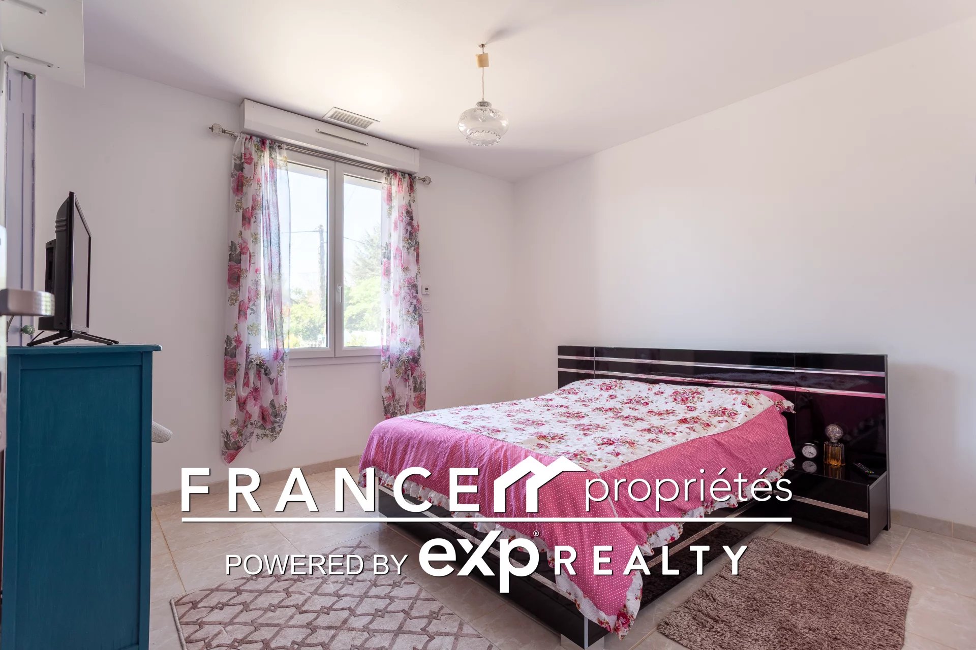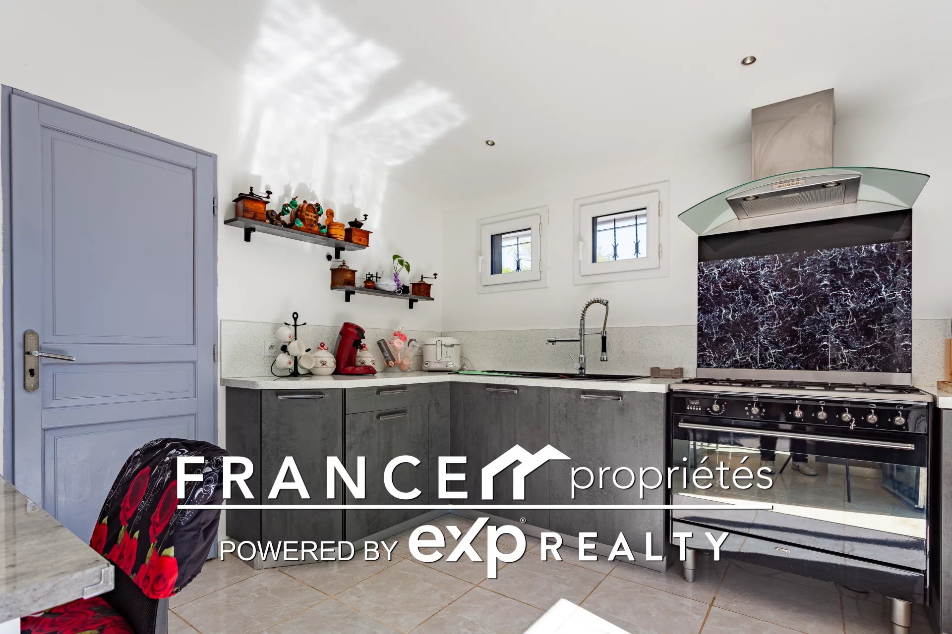 De plain pied, elle se compose d'une entrée, d'un salon, d'une cuisine entièrement équipée et aménagée, d'une buanderie, des trois chambres, d'une SDB, et d'un WC séparé.