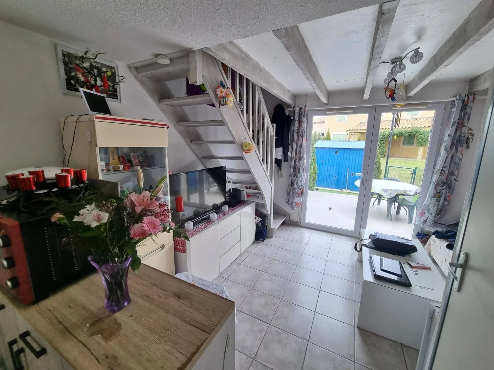 La maison se compose au rez de chaussé d'une cuisine sejour ouvert wc et salle de bain, à l'etage vous trouverez deux petites chambres en affilade pouvant etre transformées sans beaucoup frais.