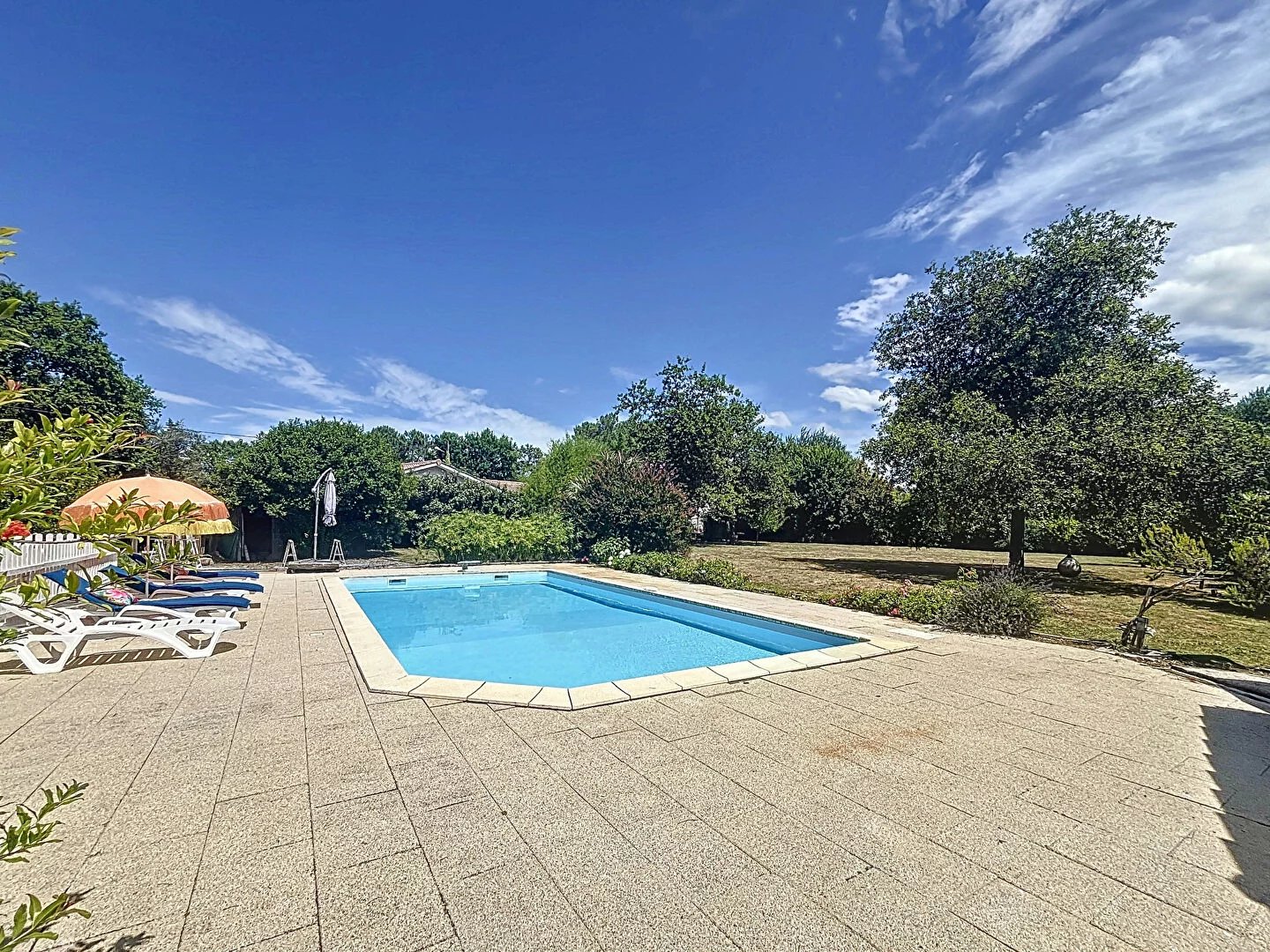 Le tout est implanté sur un terrain de plus de 2 000 m², arboré et sans vis-à-vis, avec une grande piscine, une spacieuse terrasse propice à la détente, ainsi qu'un parking bétonné pouvant accueillir plusieurs véhicules.
