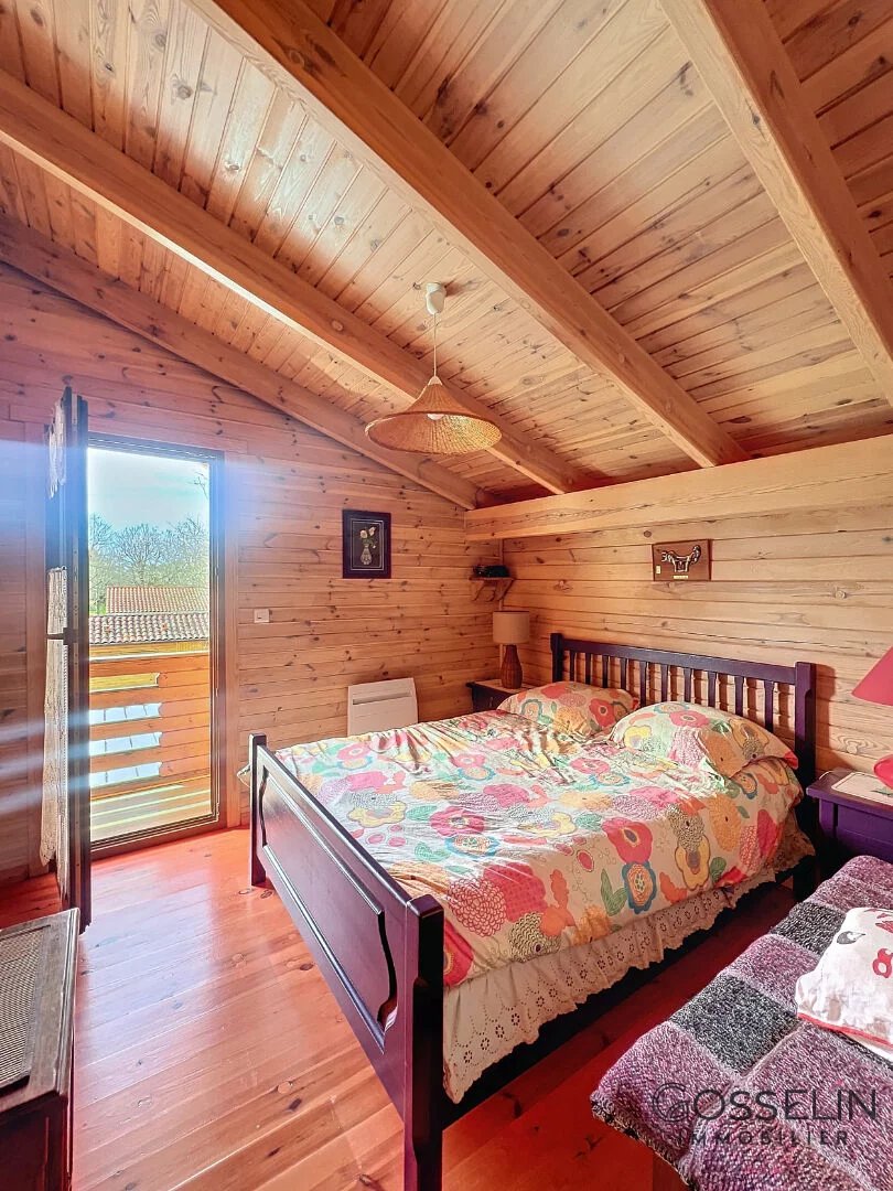 À l'étage, deux chambres et une mezzanine sont complétées par une salle de bain et un WC.
