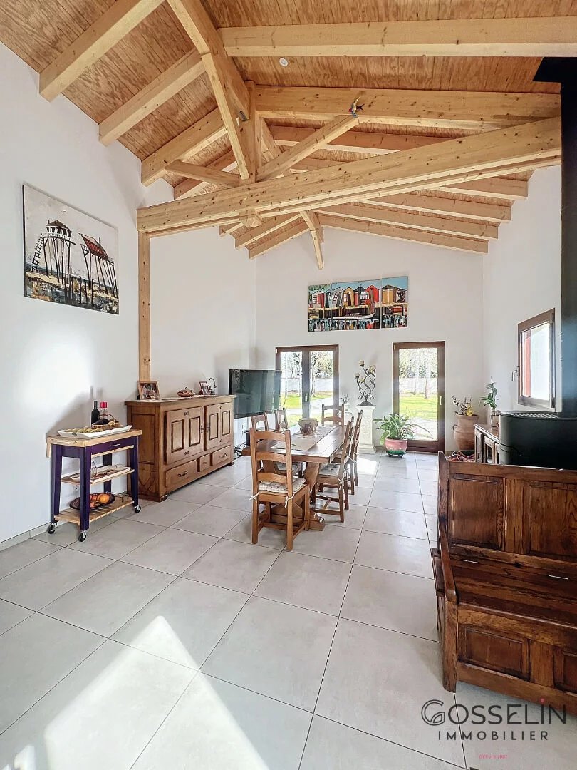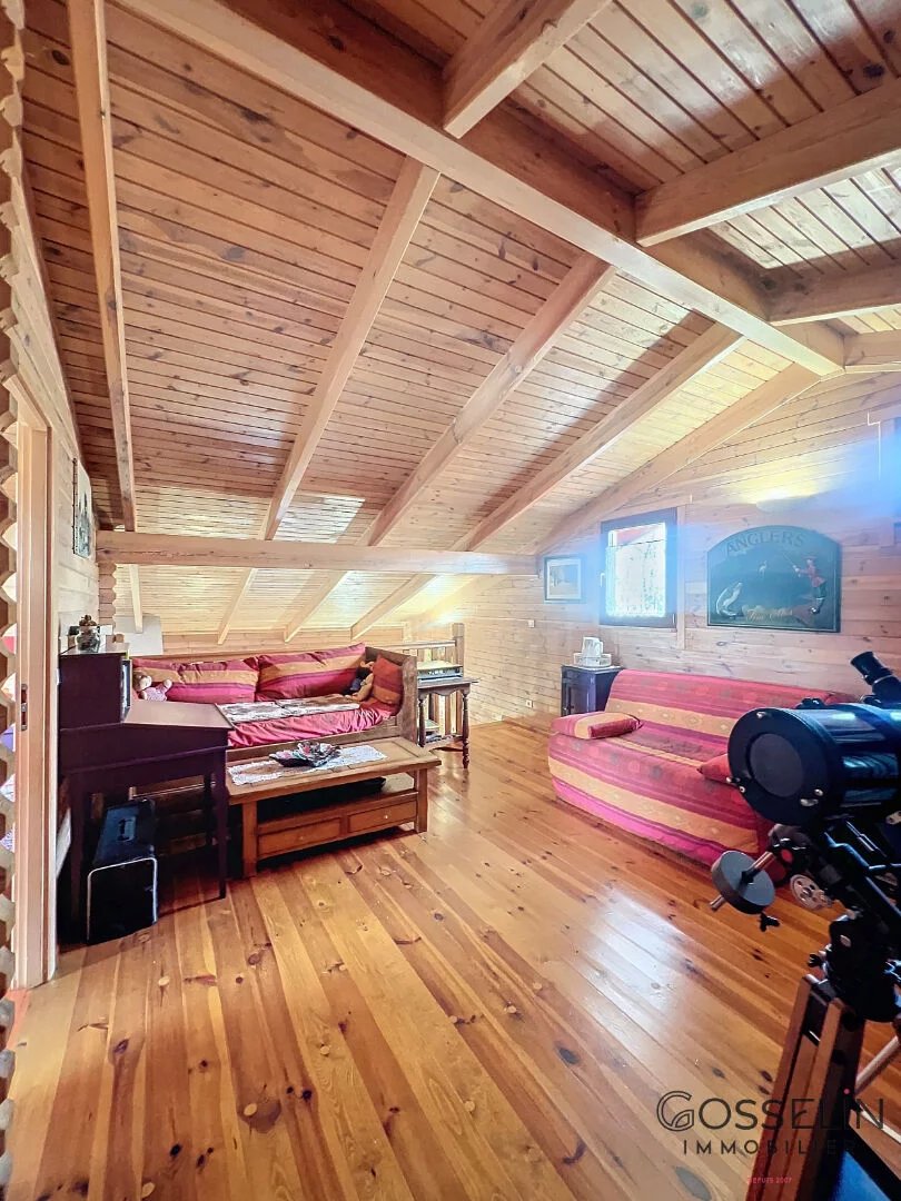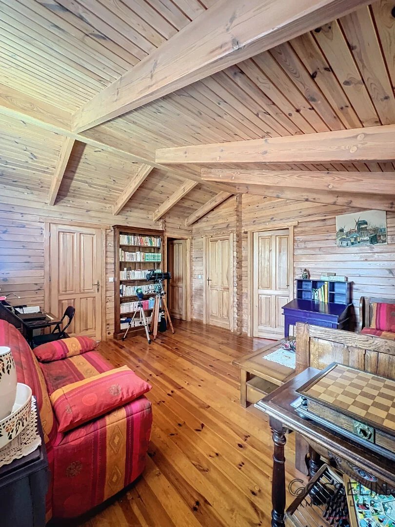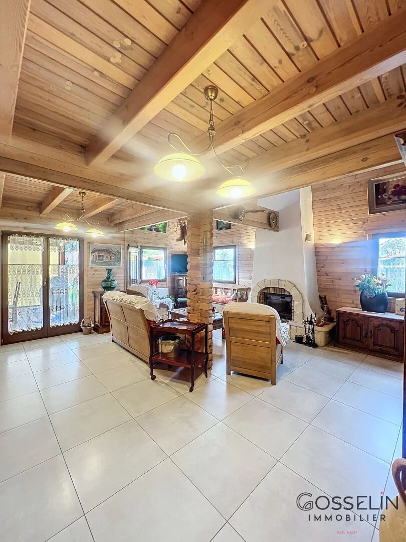 Conçue dans un esprit chalet et agrandie récemment, elle propose des espaces généreux et chaleureux. Le côté cuisine et salle à manger est vaste et lumineux, idéal pour des moments conviviaux. De l'autre côté, un salon-séjour avec cheminée apporte une ambiance cocooning et accueillante.