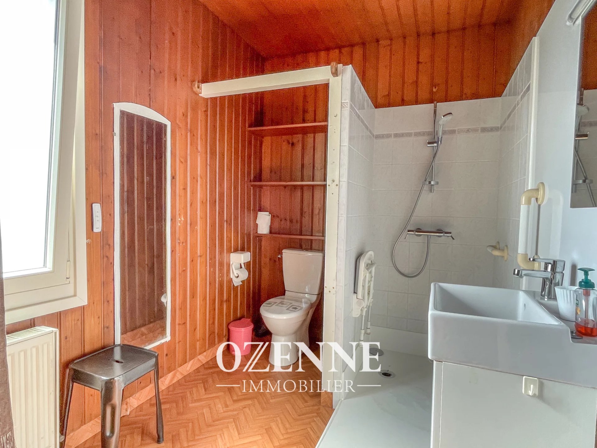 La maison offre au rez-de-chaussée, un salon avec cheminée, une cuisine aménagée avec salle à manger ouvrant sur la terrasse, une salle de douche, wc et pièce de rangements. Au 1er étage, un palier dessert trois grandes chambres et une salle de douche avec wc. Combles aménageables au dernier étage.