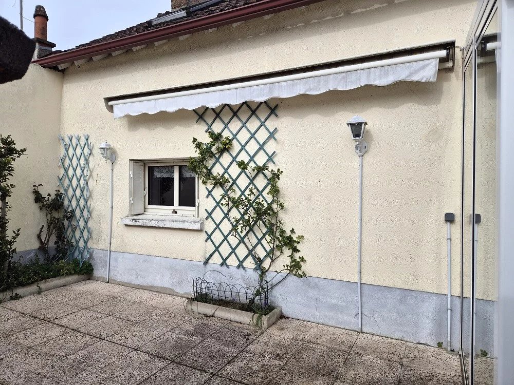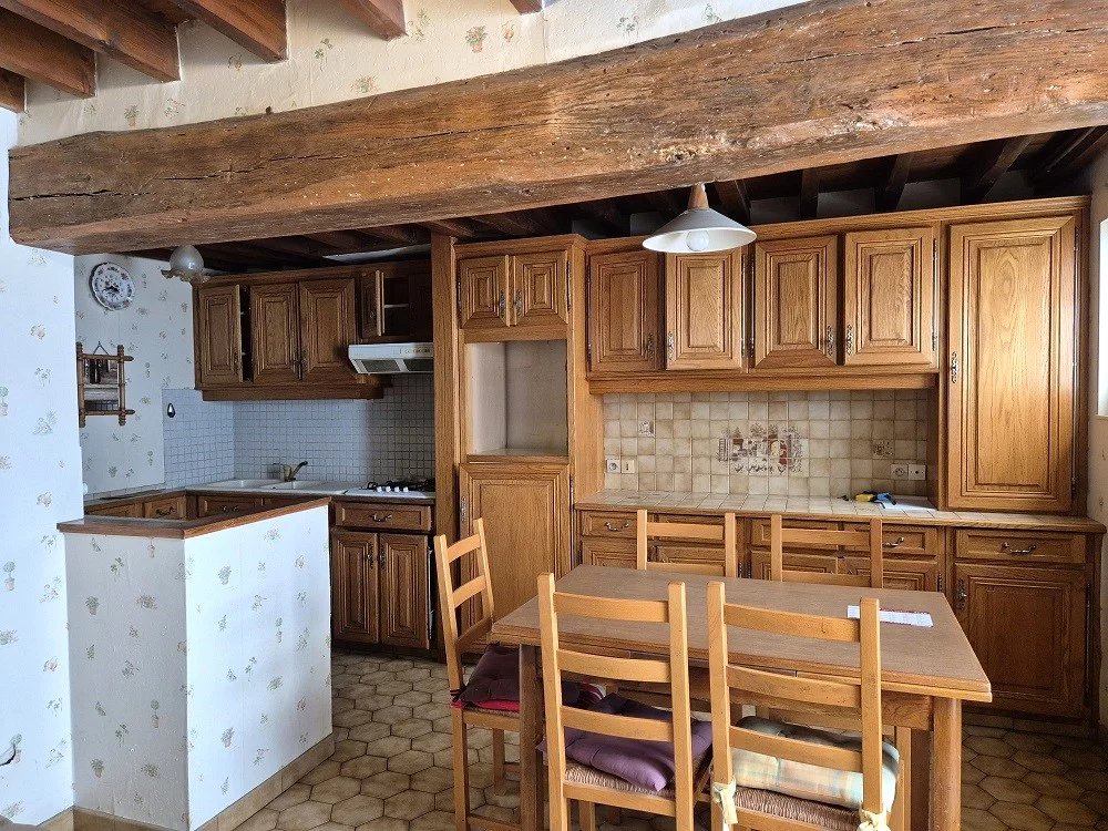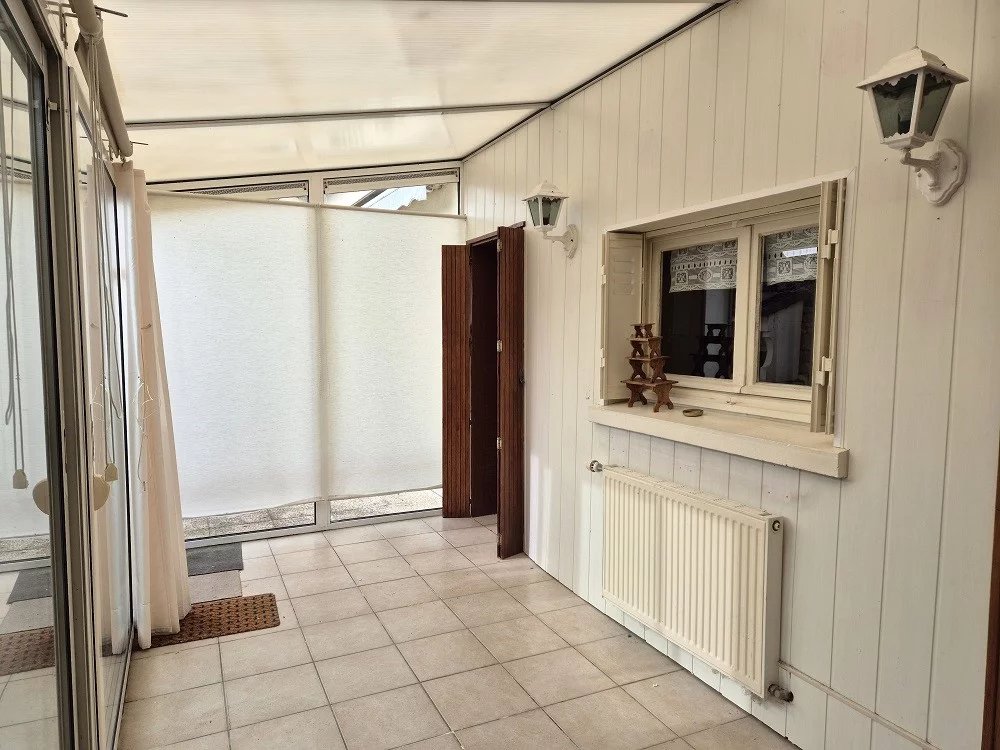 Une entrée, une cuisine ouverte sur salle à manger, un séjour, wc avec lave-mains, une véranda.