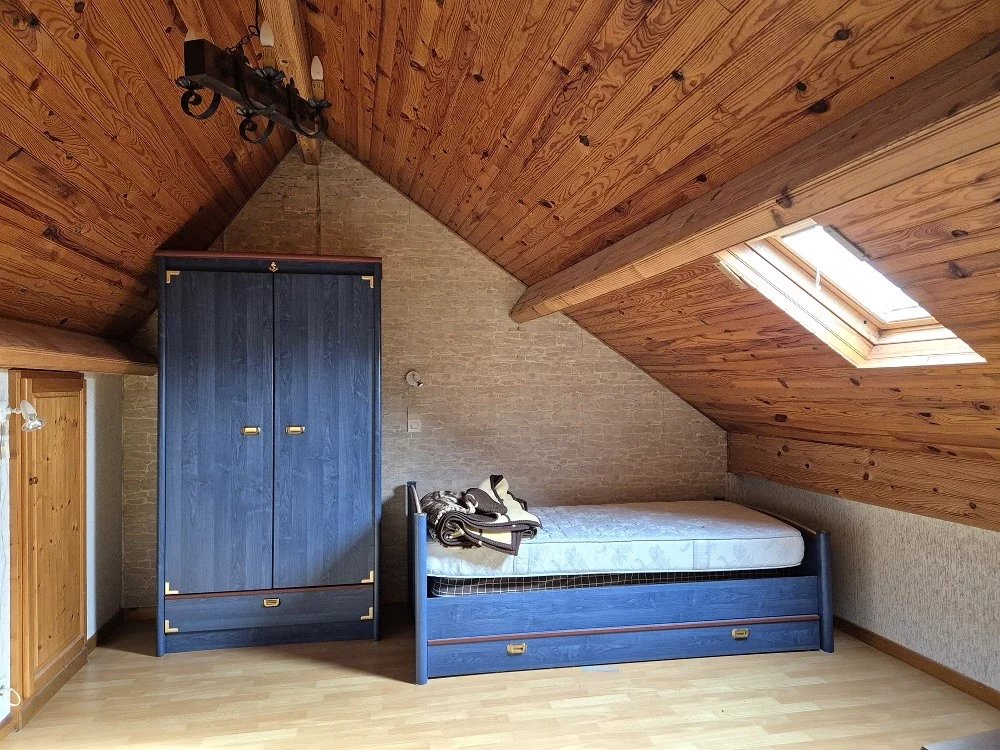 A l'étage : Un palier, deux chambres, un bureau, salle d'eau et wc.
