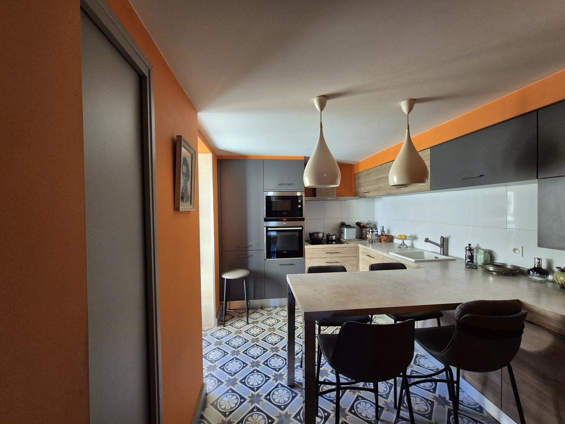 Un dégagement conduit à une cuisine équipée et aménagée, pensée pour la fonctionnalité et l'esthétique. Un WC indépendant complète ce niveau.