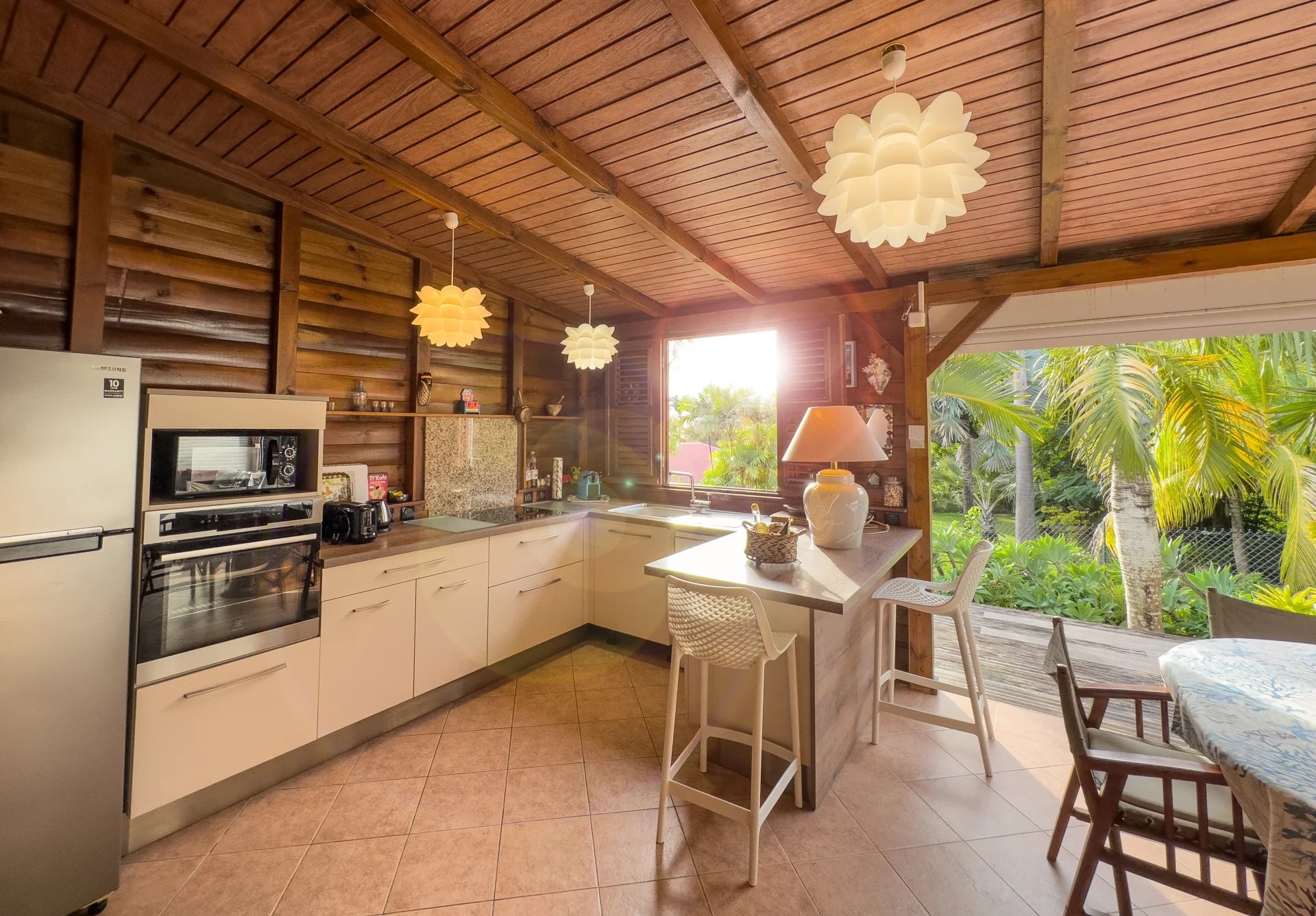 Aménagement et confort: Chaque unité réunit des espaces lumineux autour d’une cuisine américaine ouverte sur le séjour, des chambres climatisées et une insonorisation soignée. Deux piscines privées complètent l’offre, permettant à chacun de profiter d’un moment de baignade en toute intimité. Les jardins tropicaux, soigneusement intégrés au paysage, entourent les maisons de verdure parfumée et de textures variées, tandis que la décoration créole raffinée mêle motifs traditionnels et lignes contemporaines pour une atmosphère à la fois chaleureuse et élégante.