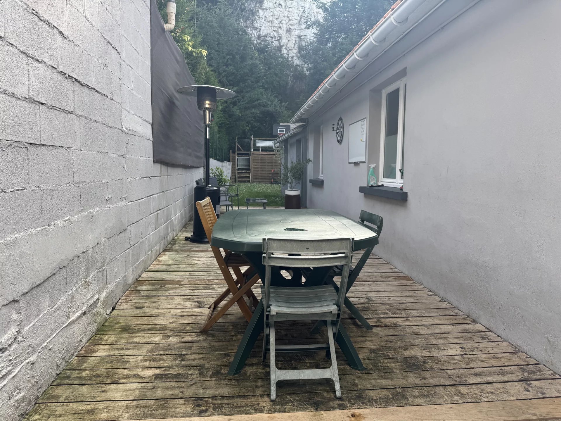 A l'extérieure : une terrasse bois, un garage, un jardin. Le tout sur une parcelle de 298m2.
