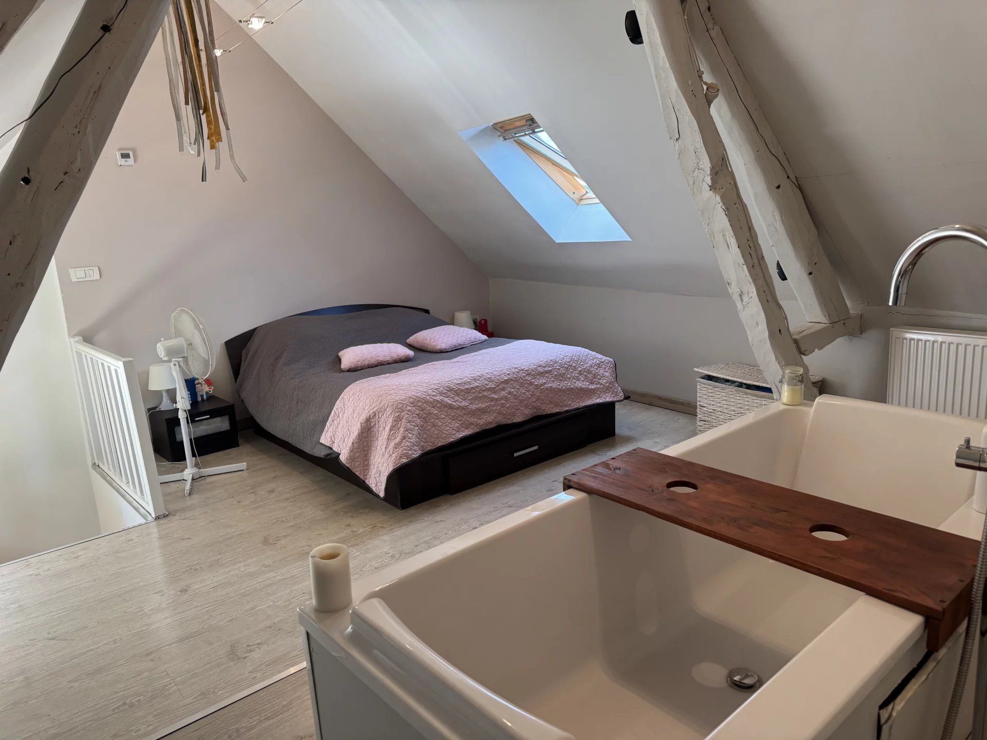 Au 2ème étage : une superbe chambre avec baignoire et dressing.
