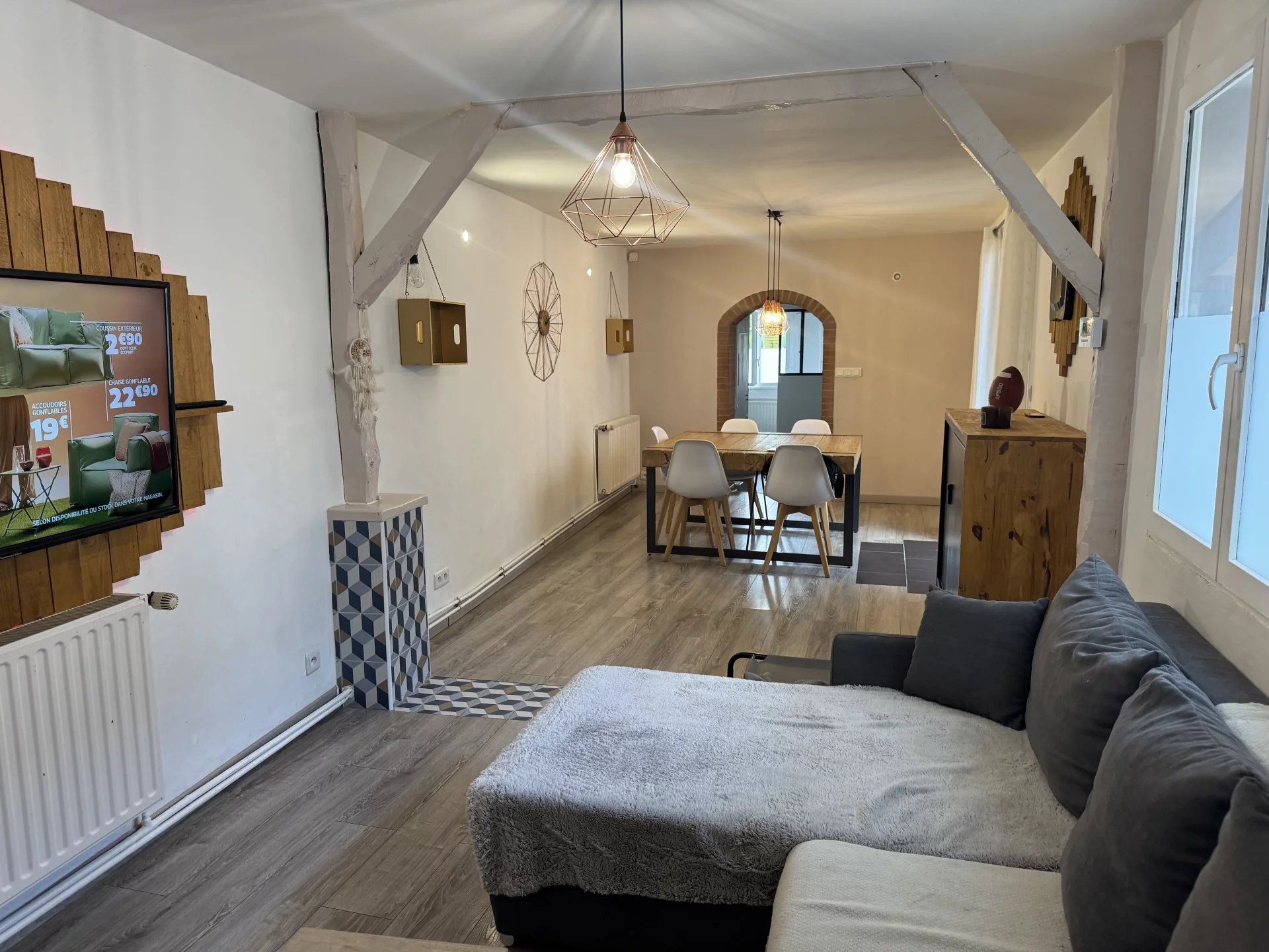 L'agence Boves immobilier vous propose une maison 4 pièces entièrement rénovée de 98m2 avec jardin et garage Idéalement située sur la commune de BOVES 80440 comprenant :