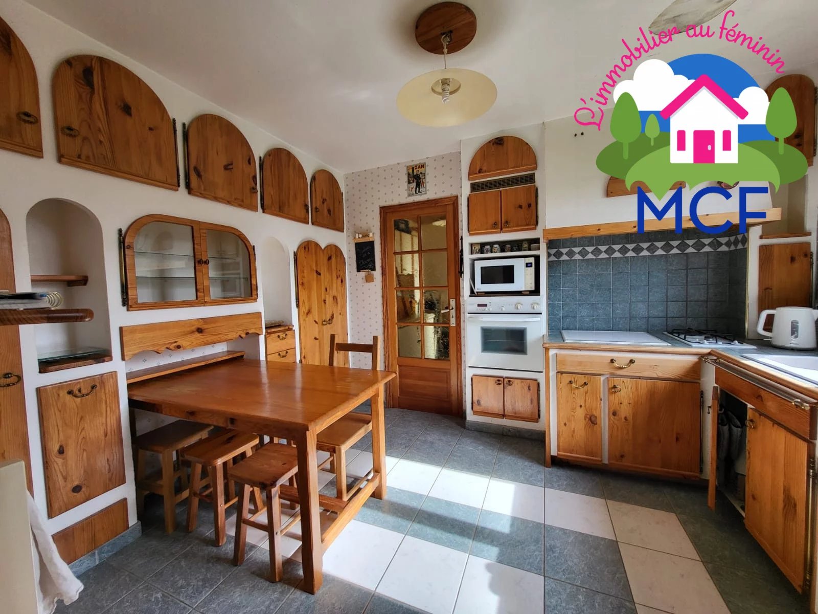 entrée, séjour avec cheminée insert de 27m², cuisine équipée, buanderie,