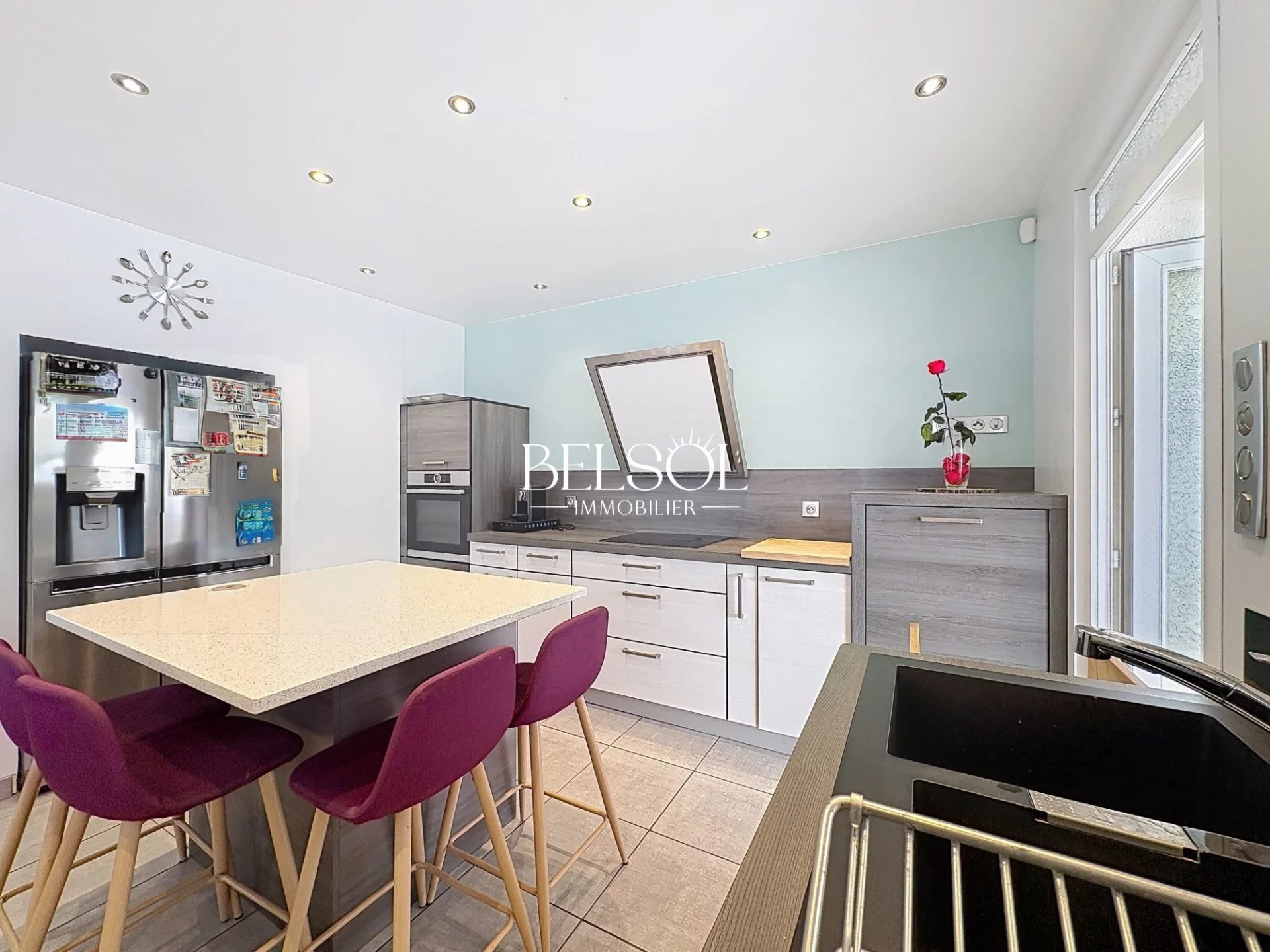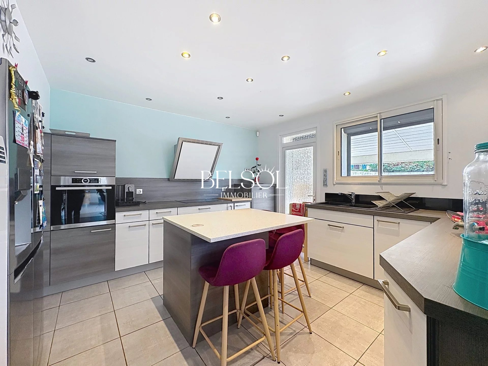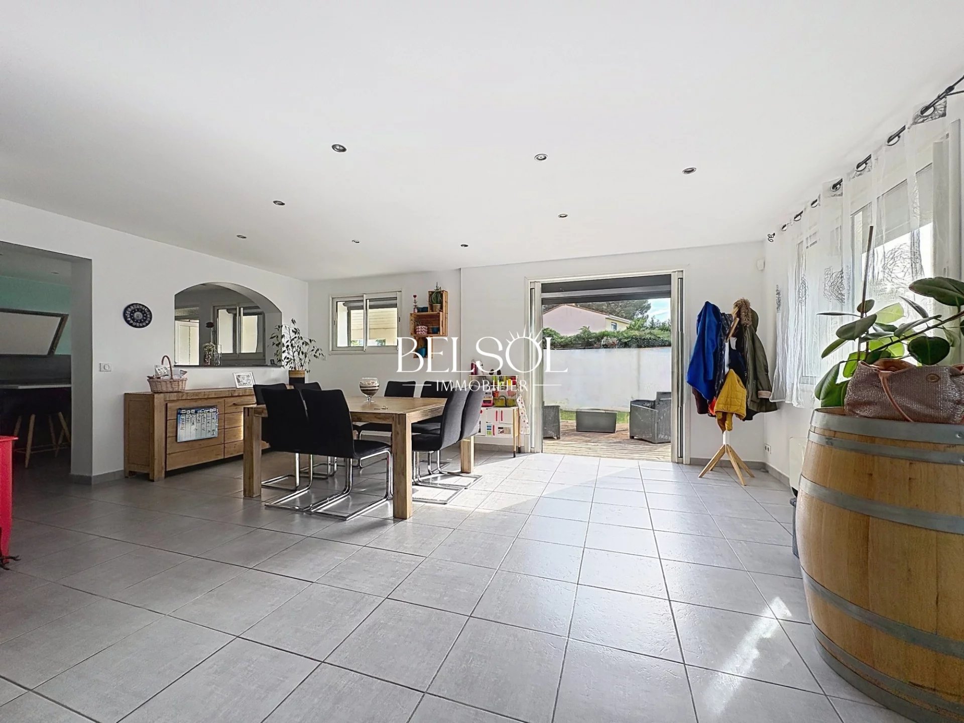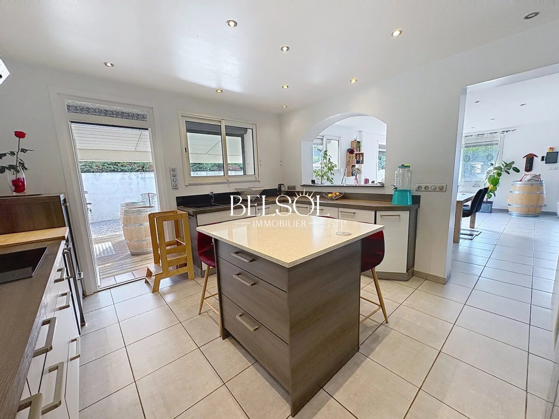 Cuisine indépendante semi ouverte sur la salle à manger et la terrasse