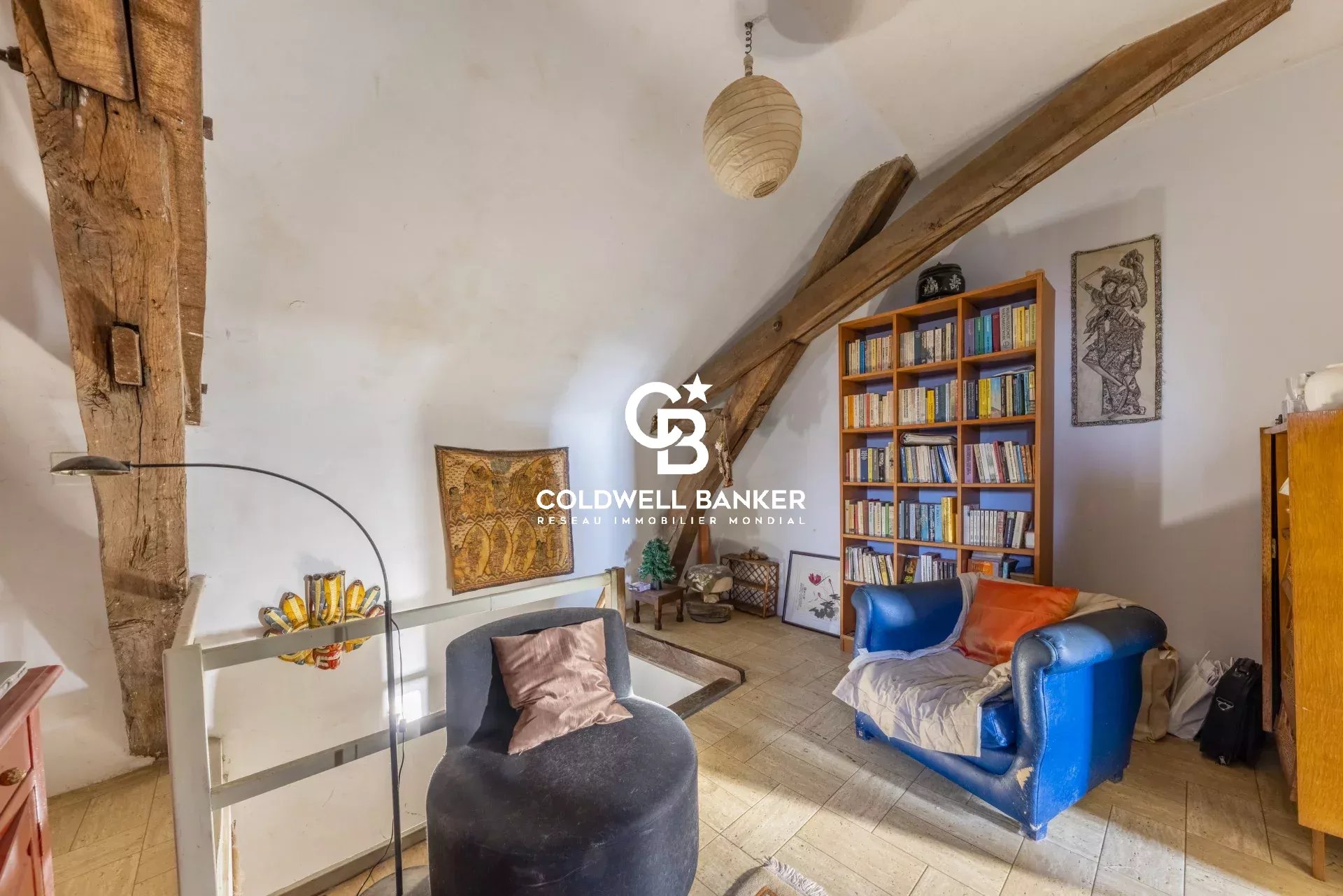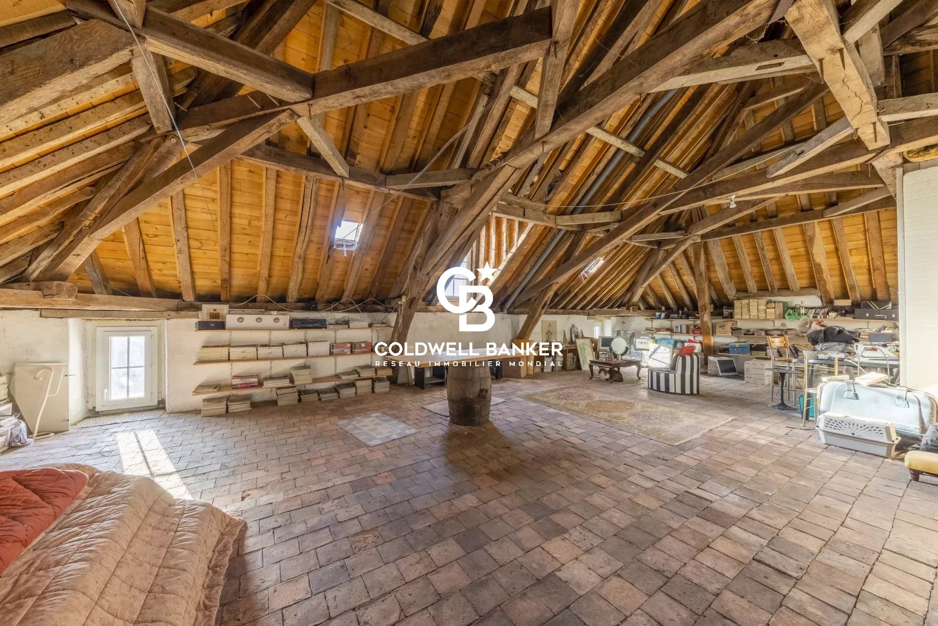 Au deuxième étage, un palier desservant un petit studio avec point d'eau et un magnifique grenier avec poutraison en bois d'origine et tommettes, pouvant être entièrement aménagé, et avec accès aux toits des deux tourelles.