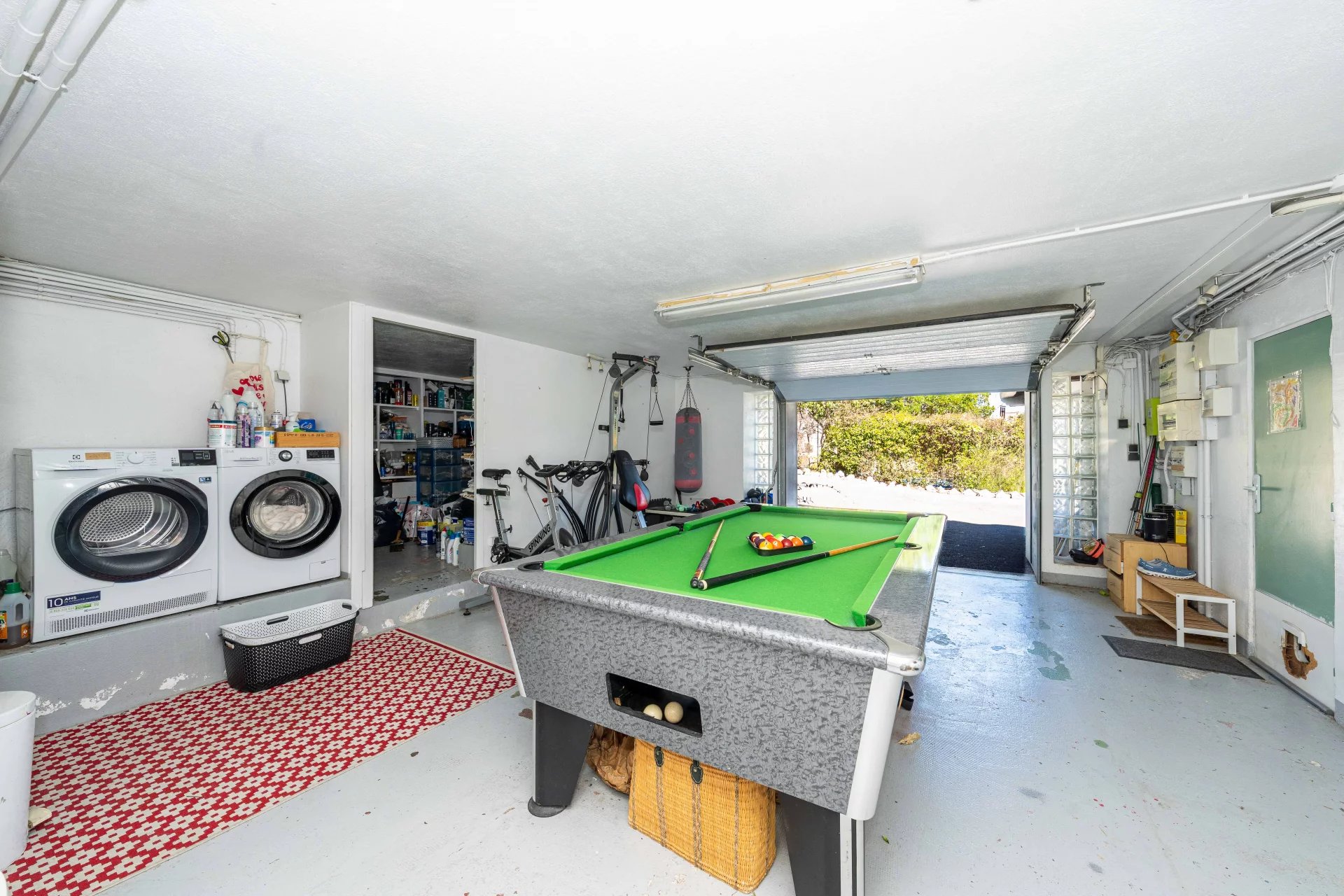 Les prestations supplémentaires incluent deux accès routiers distincts facilitant l’entrée, ainsi que deux grands garages pouvant accueillir un petit bateau.