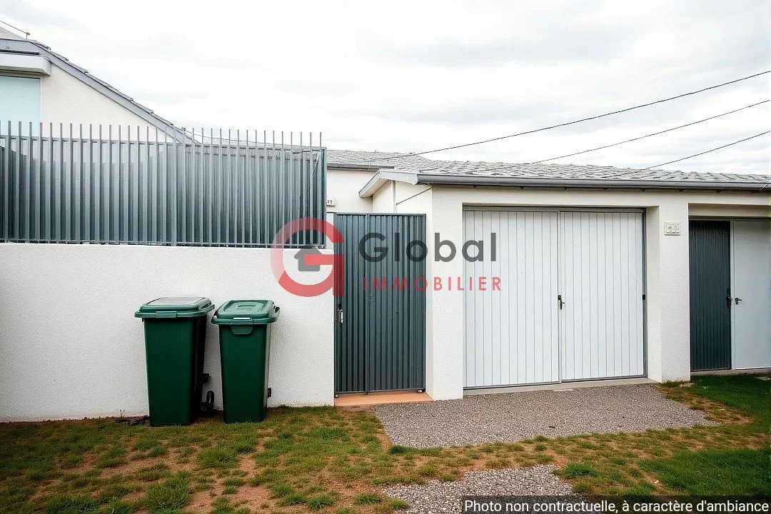 Cette maison de 84 m2 se situe sur un terrain arboré de 187 m2 et possède un garage fermé et un local rangement.