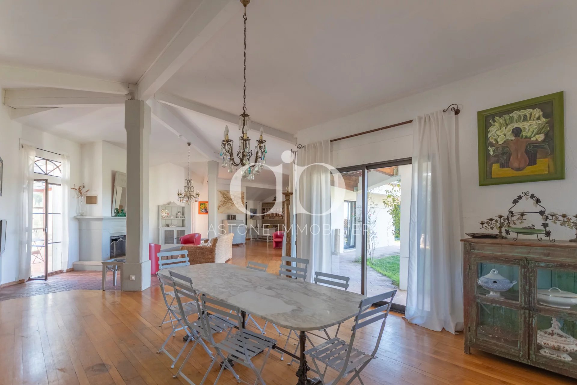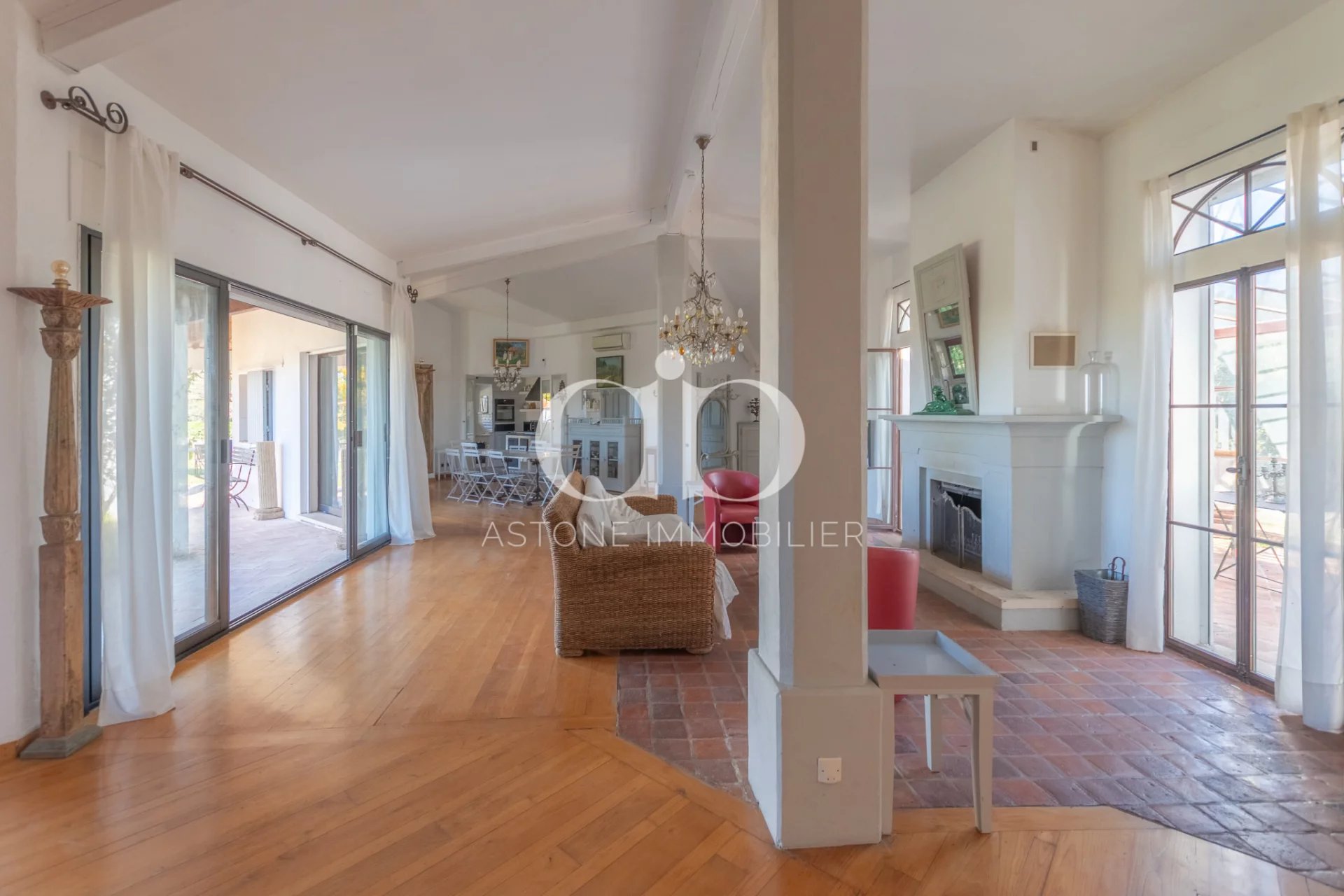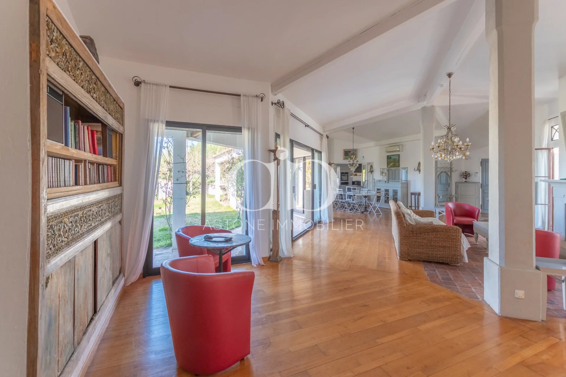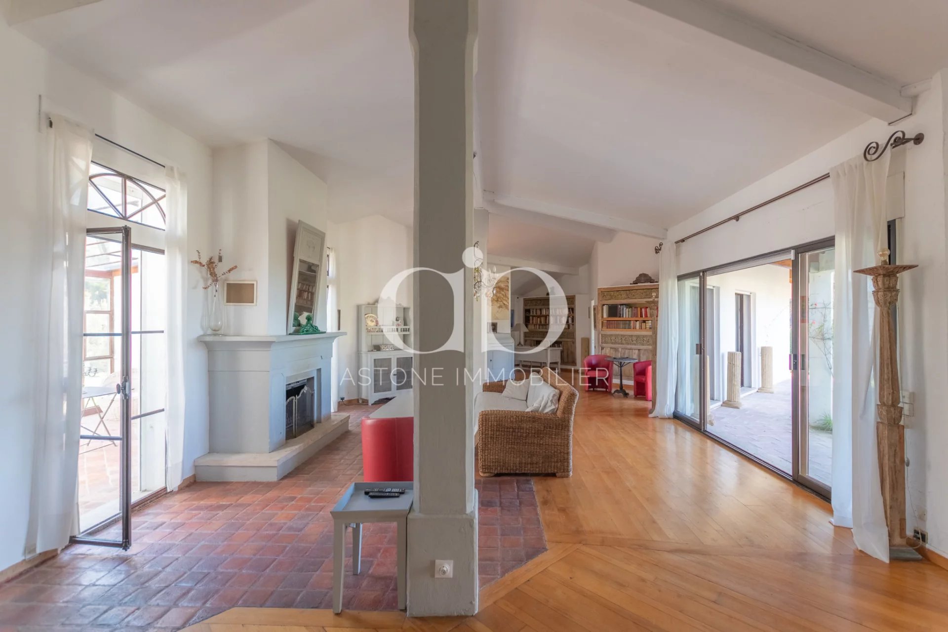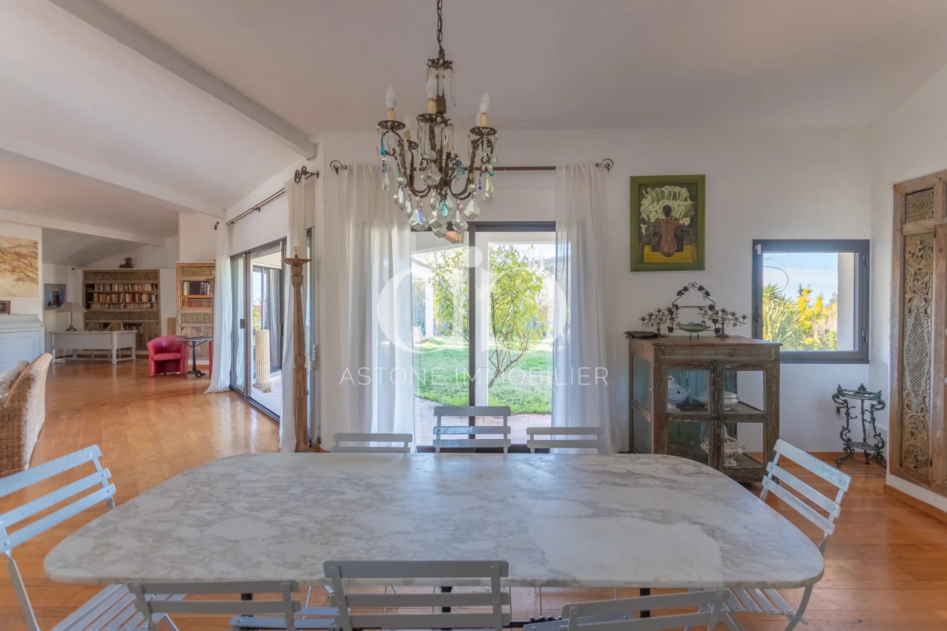 La maison, aux volumes généreux, développe 180 m2 entièrement ouvert vers l'extérieur, créant un effet 'dedans-dehors'. Elle se compose d'une grande pièce de vie de près de 90 m2, une cuisine semi ouverte de 18 m2 avec buanderie, 3 grandes chambres dont une avec salle de bain et wc, d'une autre chambre avec salle d'eau, d'un wc invités, d'une belle véranda en fer forgé et d'un garage. Nombreuses places de parking.