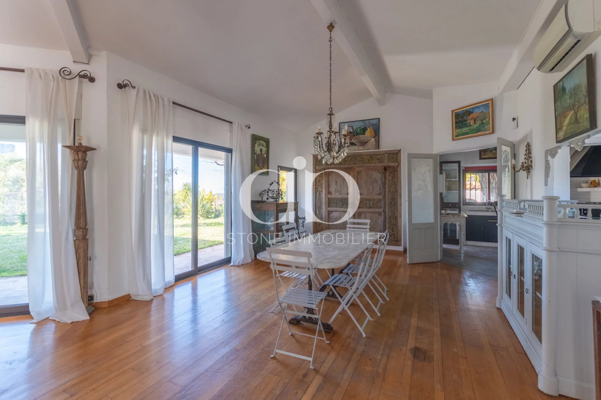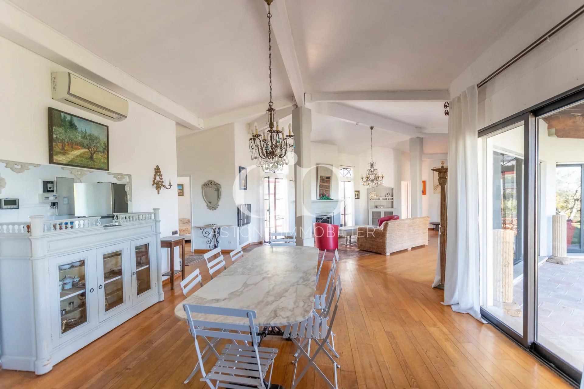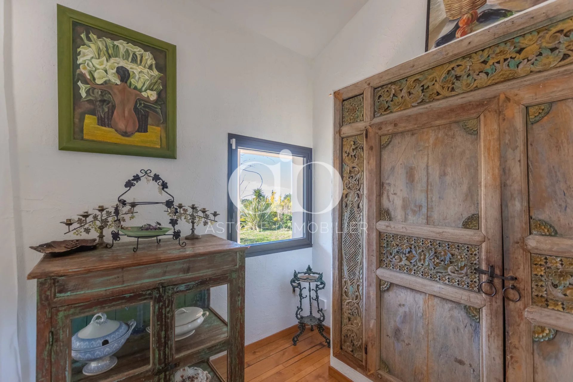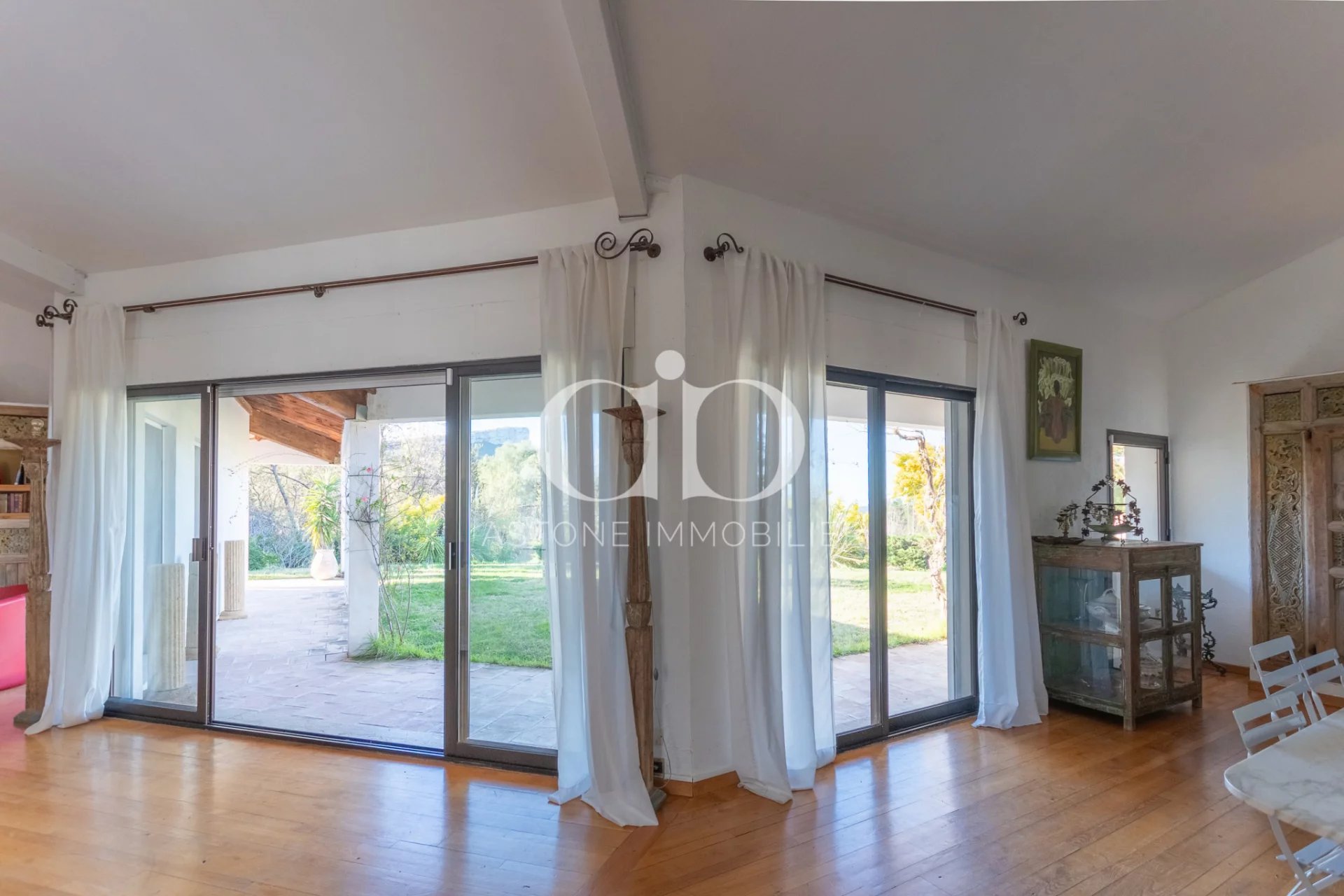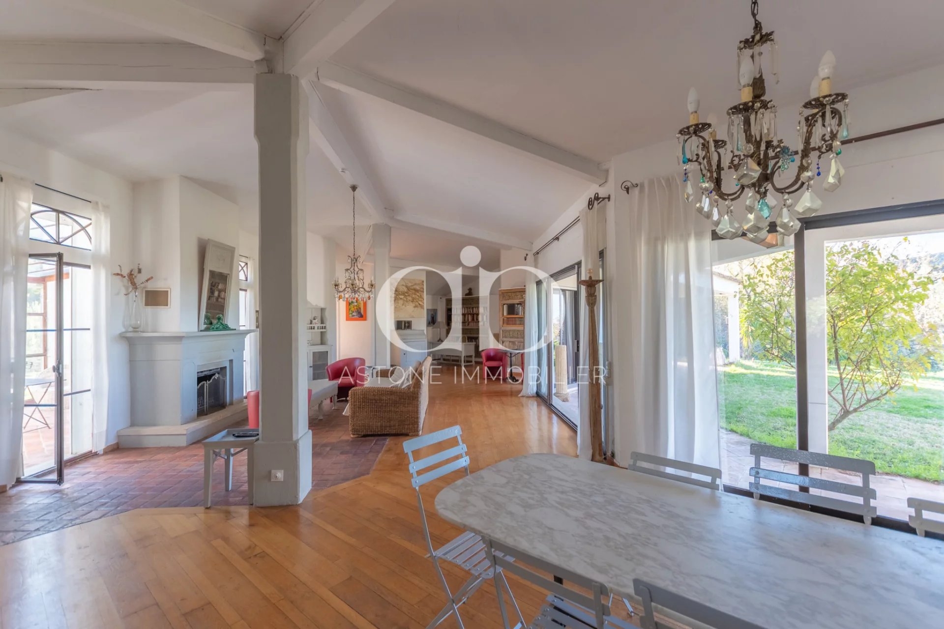 La maison, aux volumes généreux, développe 180 m2 entièrement ouvert vers l'extérieur, créant un effet 'dedans-dehors'. Elle se compose d'une grande pièce de vie de près de 90 m2, une cuisine semi ouverte de 18 m2 avec buanderie, 3 grandes chambres dont une avec salle de bain et wc, d'une autre chambre avec salle d'eau, d'un wc invités, d'une belle véranda en fer forgé et d'un garage. Nombreuses places de parking.