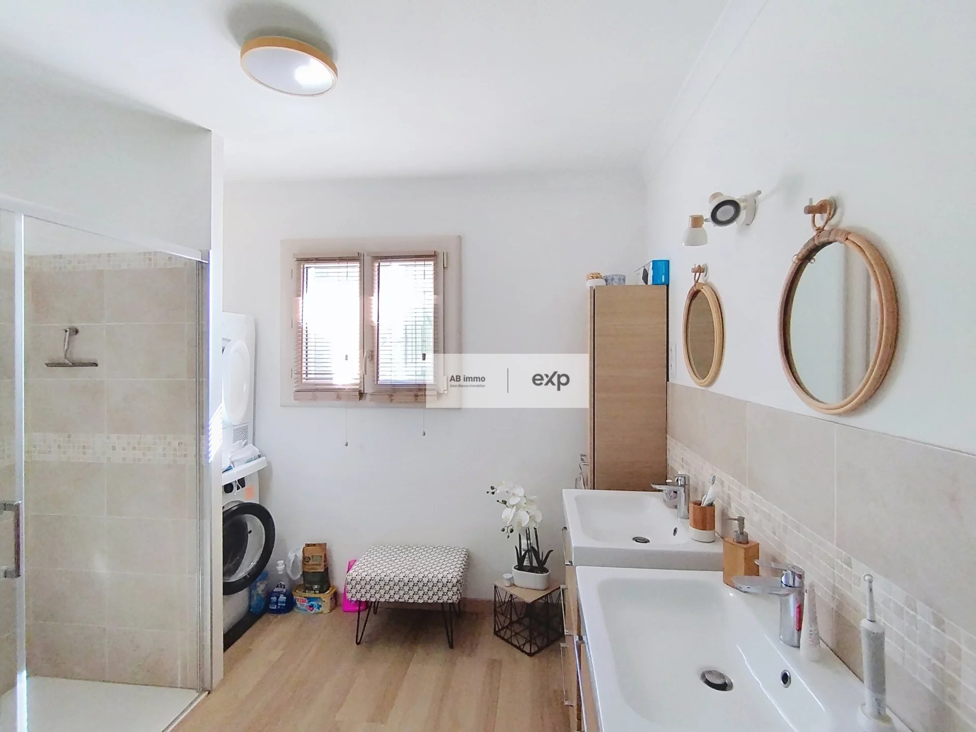 Au niveau inférieur, une chambre avec sa salle d’eau profite d’un accès direct au jardin, pouvant convenir à un usage indépendant ou d’accueil.