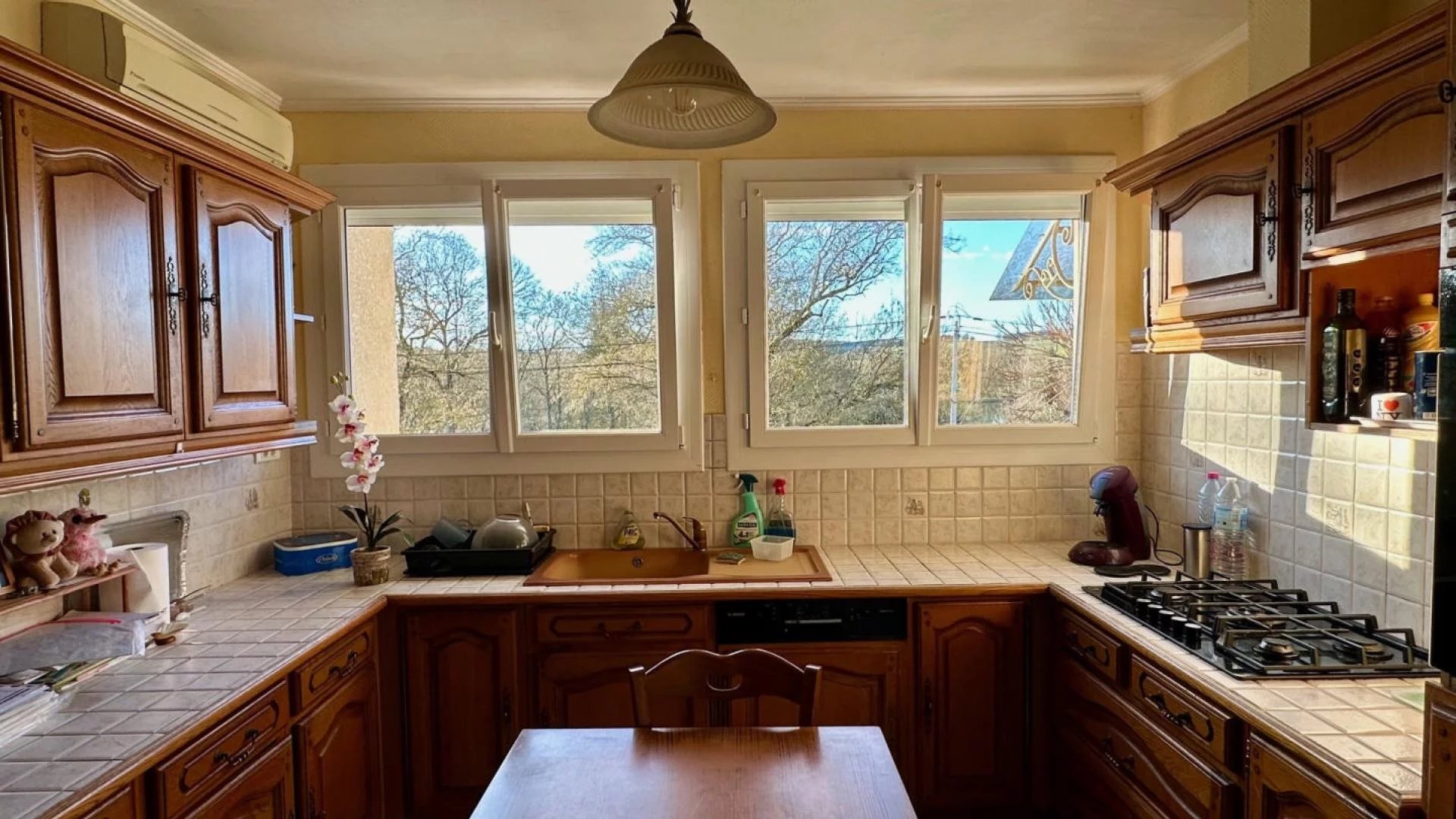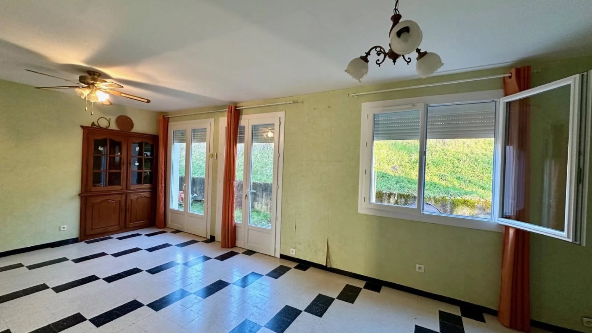 GERS - A proximité de la base de loisirs de Castéra Verduzan, maison des années 70 de 104 m² habitables comprenant une entrée, un séjour avec cheminée, une cuisine équipée, une salle d'eau, un wc et 4 chambres. La maison est implantée sur une parcelle de près de 800 m², elle comprend une allée privée, un garage attenant et un garage non attenant. Trois unités de climatisation réversible assurent le chauffage. Les huisseries ont été remplacées en PVC double vitrage. La maison est reliée au tout à l'égout.