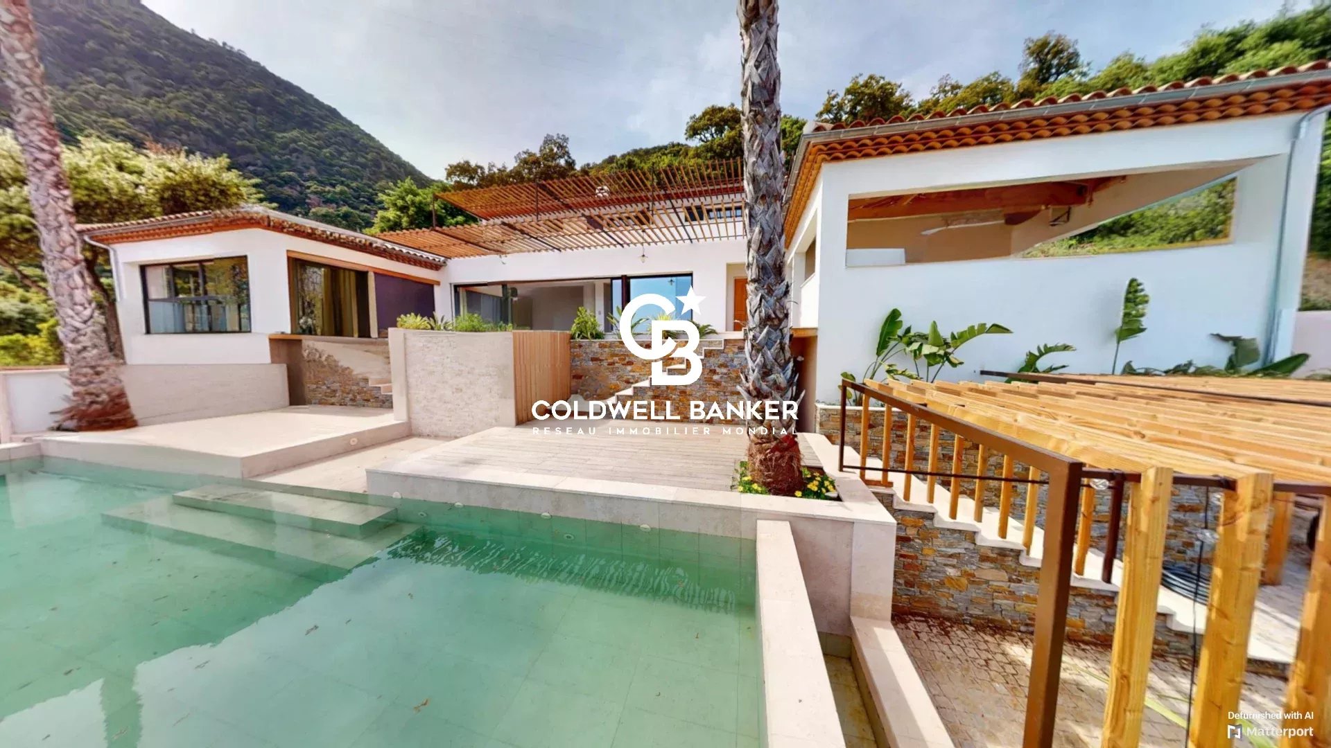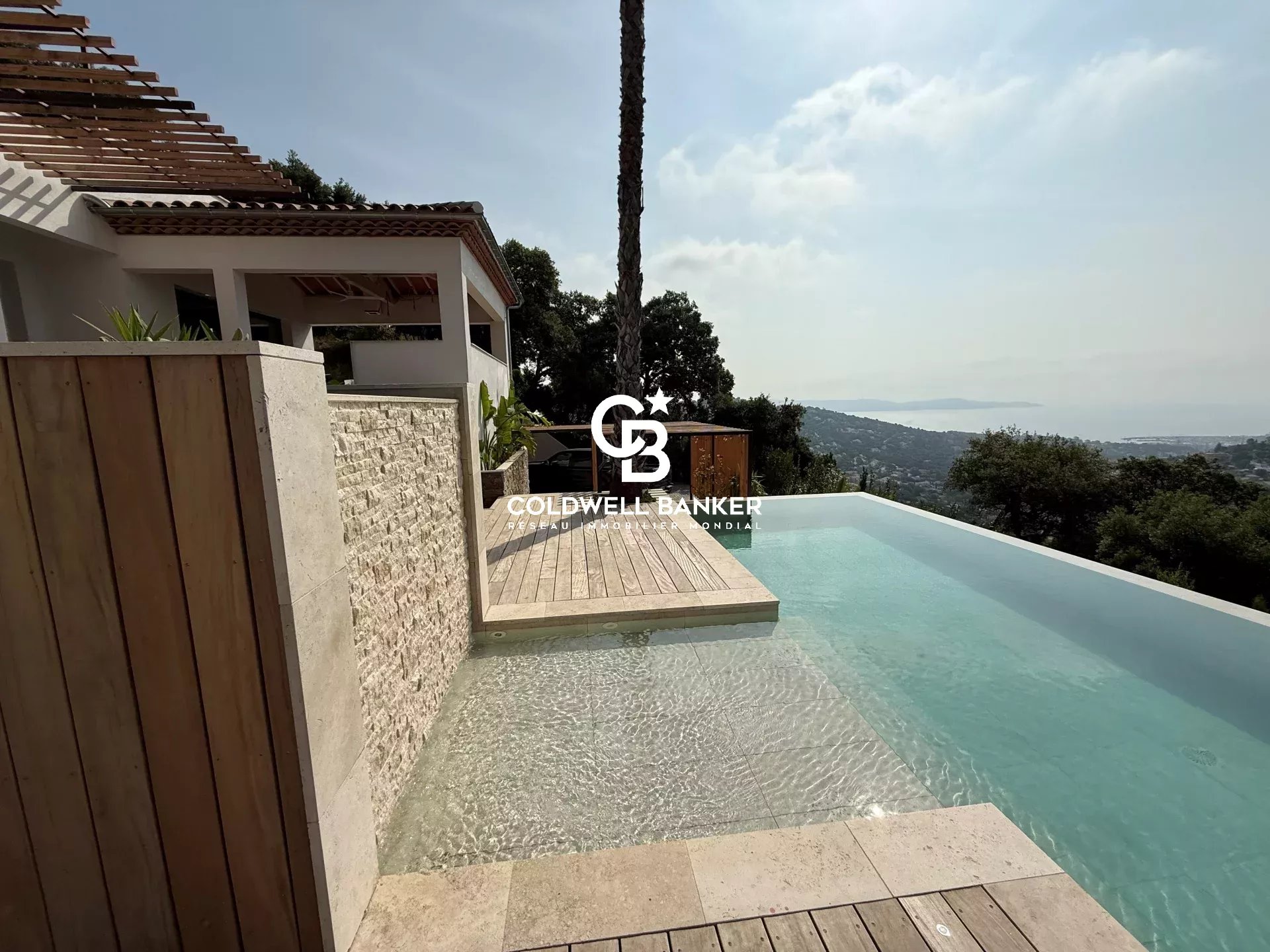 Dès l’entrée, de vastes espaces lumineux s’ouvrent dans une atmosphère chaleureuse et résolument fonctionnelle. Le rez-de-chaussée accueille un double séjour baigné de lumière, agrémenté d’une cave à vins creusée dans la roche, une cuisine aménagée, ainsi qu’une élégante suite parentale avec salle de bains et dressing. Les pièces de vie s’étendent naturellement vers l’extérieur grâce à une terrasse semi couverte, qui domine la piscine à débordement avec la mer en toile de fond.