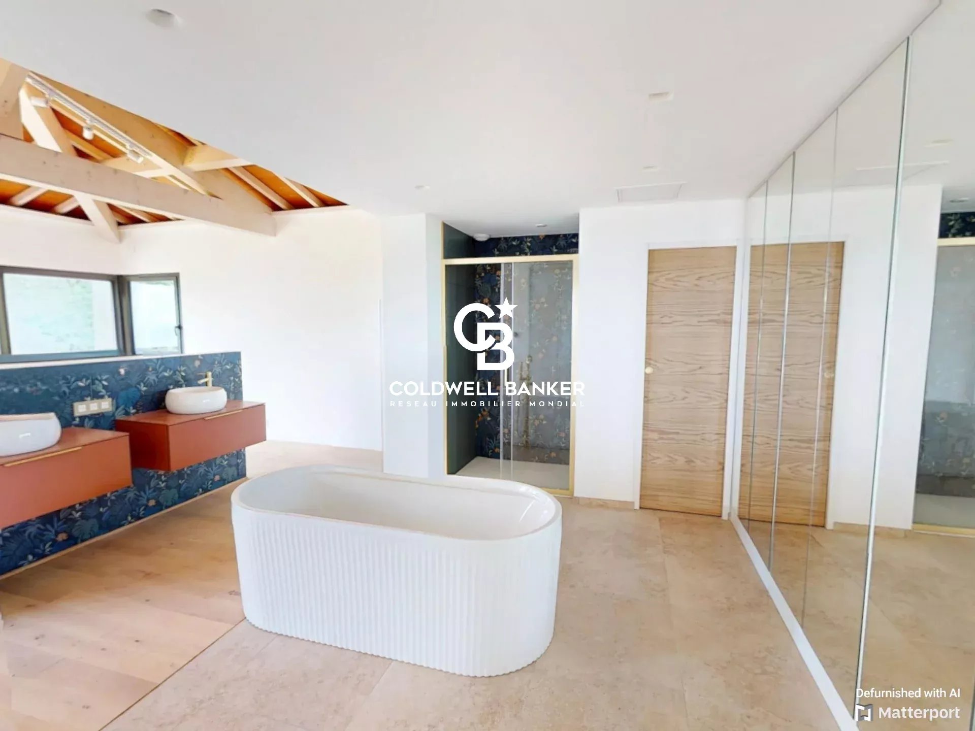 À l’étage, l’espace nuit propose une suite avec salle de bains, ainsi que trois chambres disposant chacune de leur salle d’eau, un WC indépendant, une buanderie, ainsi qu’une autre terrasse pour profiter pleinement du panorama.
