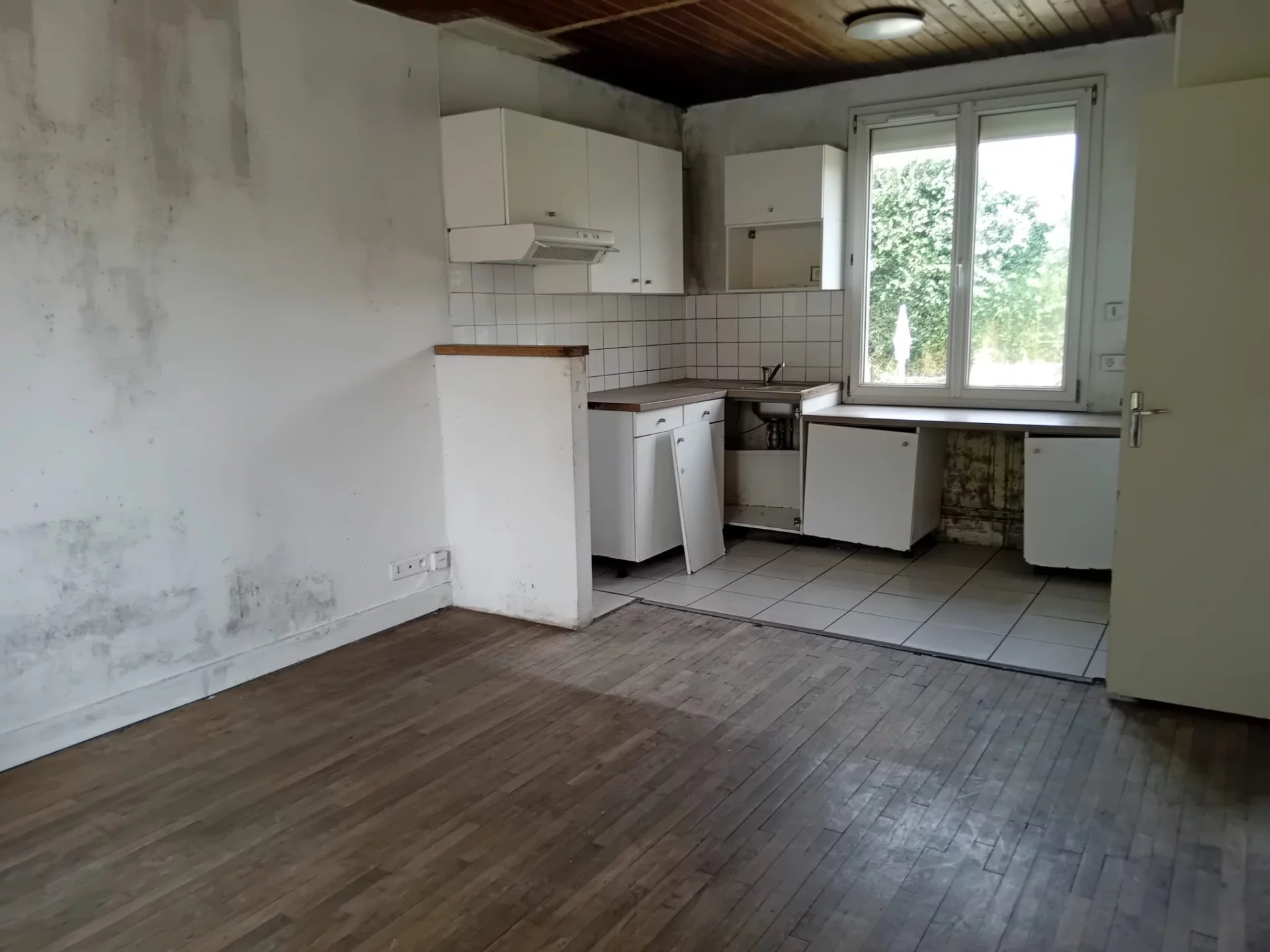 Maison de ville mitoyenne comprenant un salon, une cuisine, un débarras et des toilettes au rez-de-chaussée. Puis à l'étage, la maison possède deux chambres et une salle de bains. Surface habitable de 54m², avec un terrain de 93m².