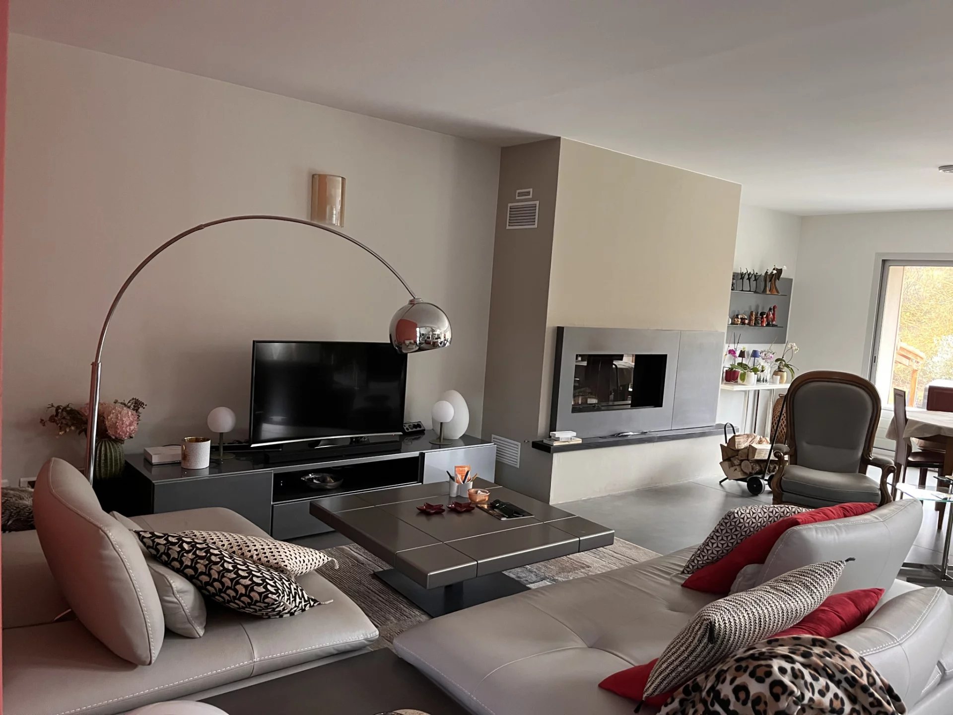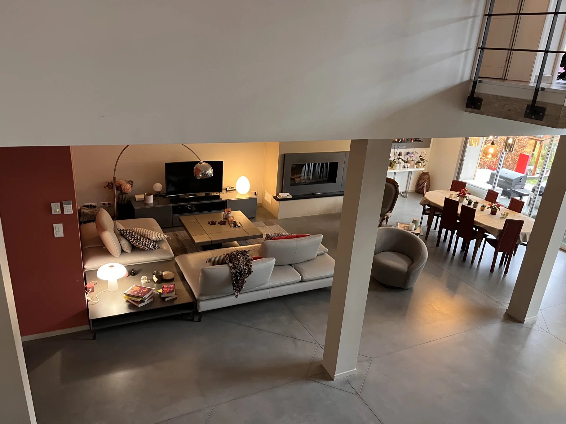 La maison s'articule autour d'une immense pièce de vie de 90m2 mêlant cuisine conviviale, salon et séjour avec cheminée, ouverte sur une terrasse ombragée de 65m2 (dallage et pergola store motorisé de 2023),