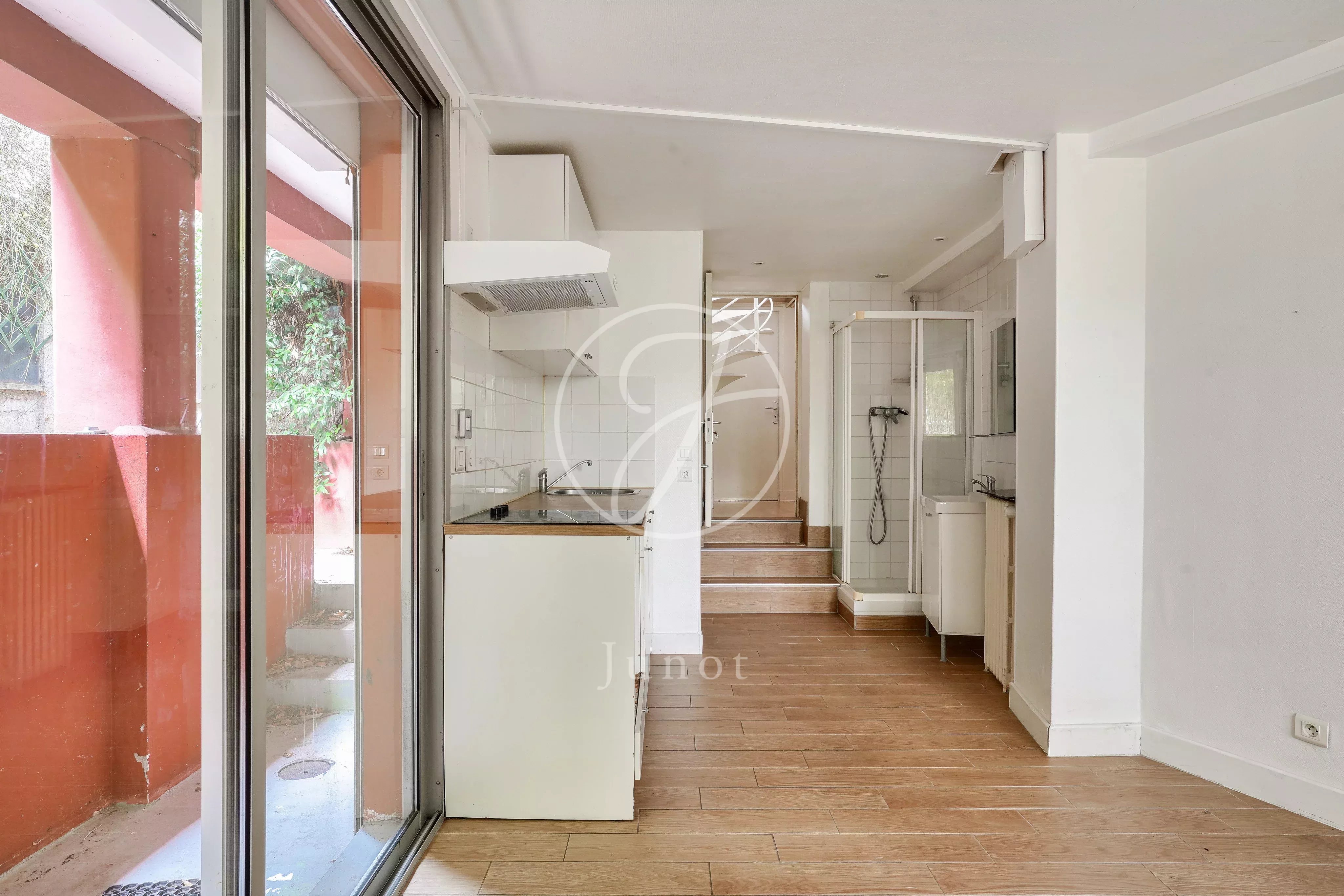 En entresol, un studio avec entrée indépendante propose un espace salle de douche, toilettes séparés et un coin cuisine, parfait pour une chambre d'adolescent, une activité libérale, un espace invités ou un revenu locatif.