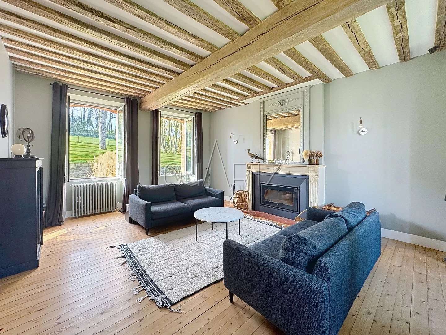 Unique, au coeur d'une vallée bucolique et champêtre à 10 minutes de Chaumont-en-Vexin, cette sublime demeure et sa dépendance entièrement restaurées sont édifiées sur un jardin, clos et arboré de 3 820 m², au calme absolu. La maison vous offre : une vaste entrée, un séjour avec cheminée, une salle à manger, ouvrant sur le jardin, une cuisine dinatoire entièrement aménagée et équipée, 6/7 chambres, une salle de bain, deux salles d'eau. La maison d'amis quant à elle vous propose : une pièce à vivre avec cuisine ouverte ouvrant sur le jardin, 2/ 3 chambres dont une en rez-de-chaussée avec salle d'eau. Une piscine chauffée, un garage et un haut vent viennent parfaire ce bien coup de coeur aux finitions haut de gamme. A 1h10 de Paris, et 10 minutes de toutes les commodités et de la gare pour Paris Saint Lazare. Honoraires : 4,93 % TTC inclus charge acquéreur (710 000 hors honoraires)