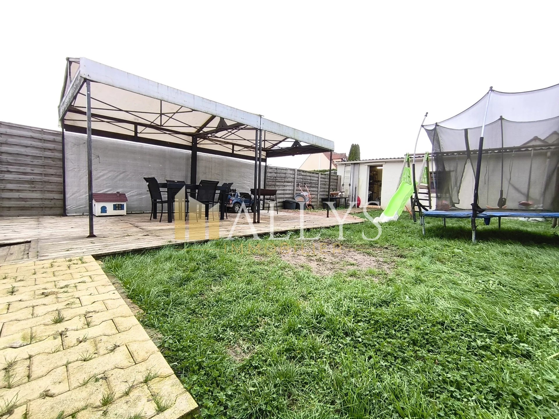 À l’extérieur : jardin entièrement clos de 229 m², garage avec porte motorisée offrant un stationnement sécurisé.