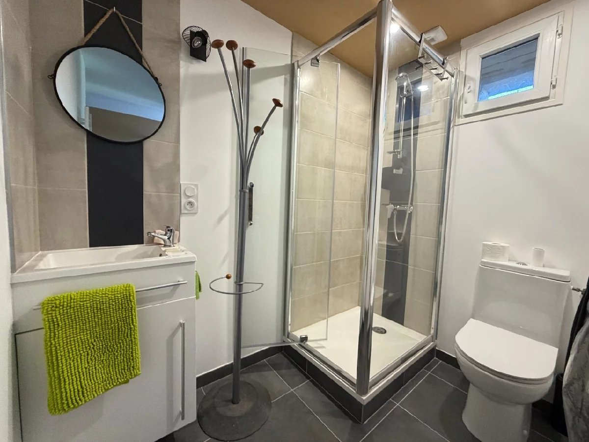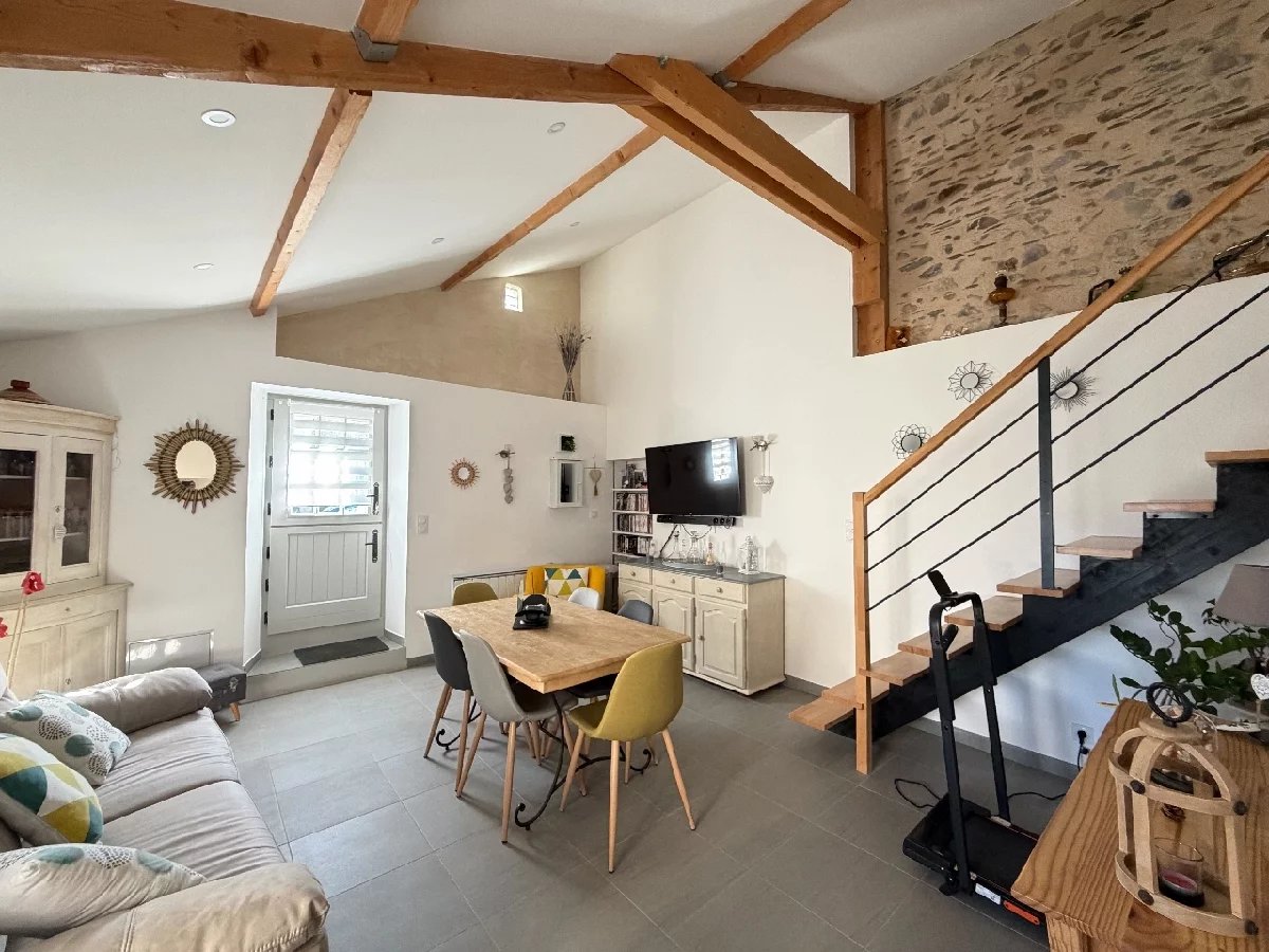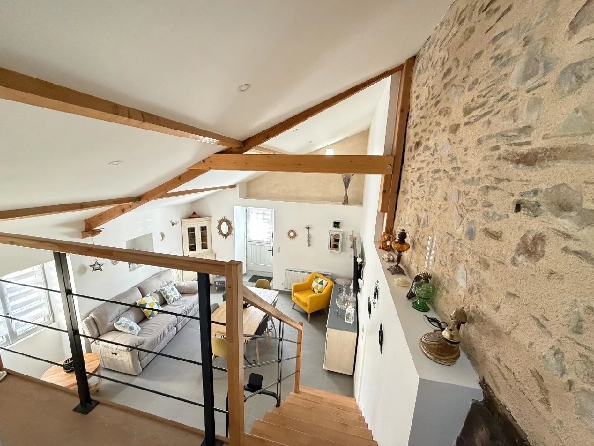 Le deuxième logement, également entièrement rénové, se compose dune cuisine ouverte aménagée et équipée, dun salon, dune chambre et dune salle deau avec WC.