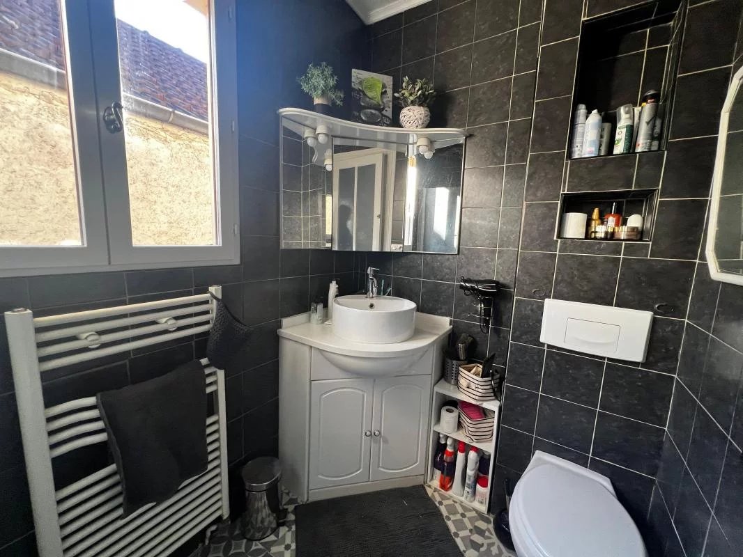 A l'étage vous trouverez deux grandes chambres, un dressing, une pièce palière pouvant servir d'un coin bureau et une salle de bains avec wc . Une troisième chambre mansardée est idéale pour une salle de jeux ou un atelier. Le jardin exposé ouest, sans aucun vis a vis complète cette belle prestation.Une pompe a chaleur récente.