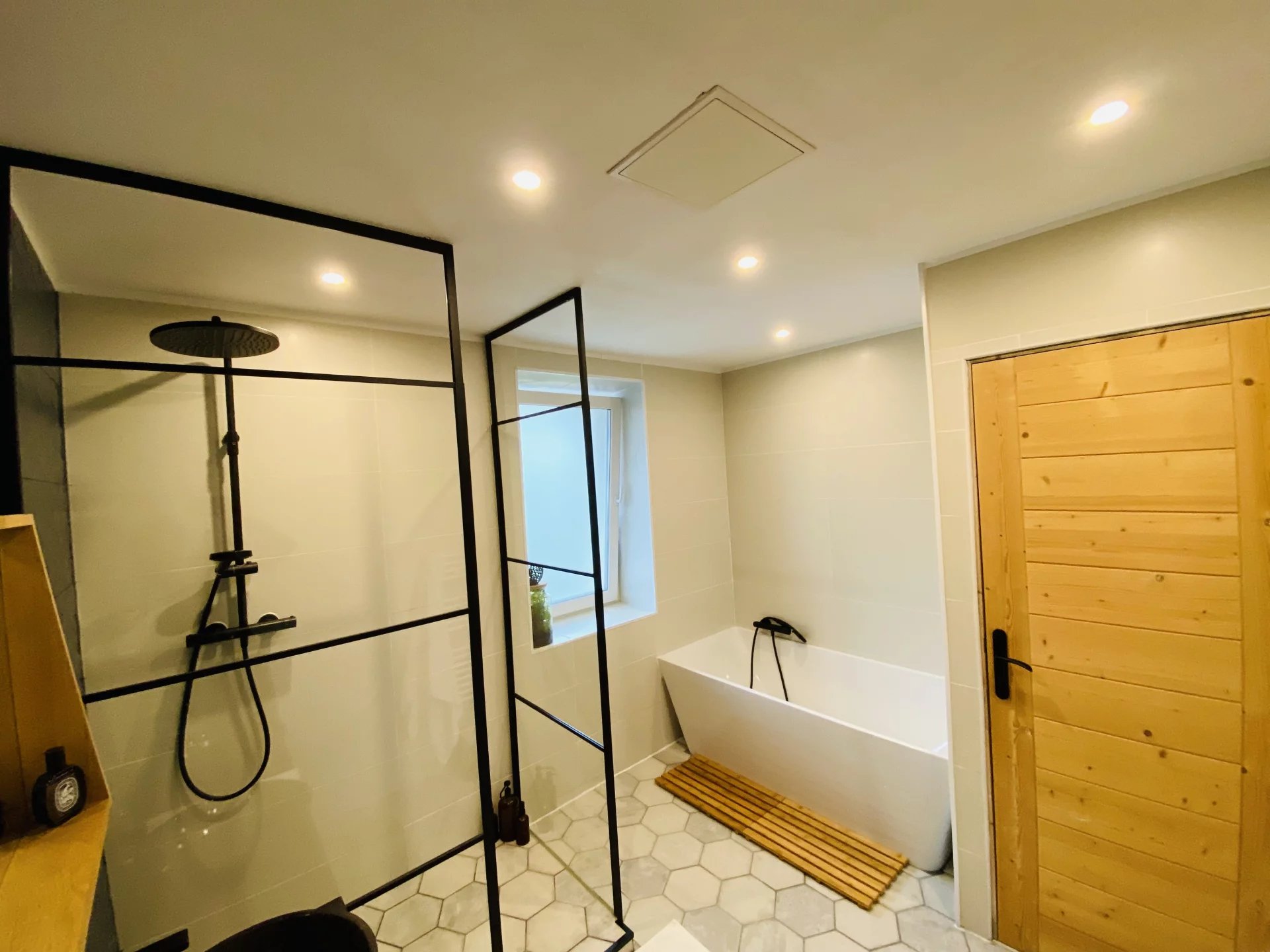 - Au deuxième et dernier étage, se trouve l'espace nuit, qui vous proposera trois chambres dont une "master room" pour les parents avec placards et deux autres plus petites pour les enfants ou les amis, ainsi qu'une grande salle de bains et des toilettes indépendantes.