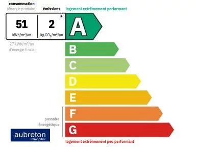 La note énergétique est en A avec une consommation de 510 à 730 € par an pour le chauffage.