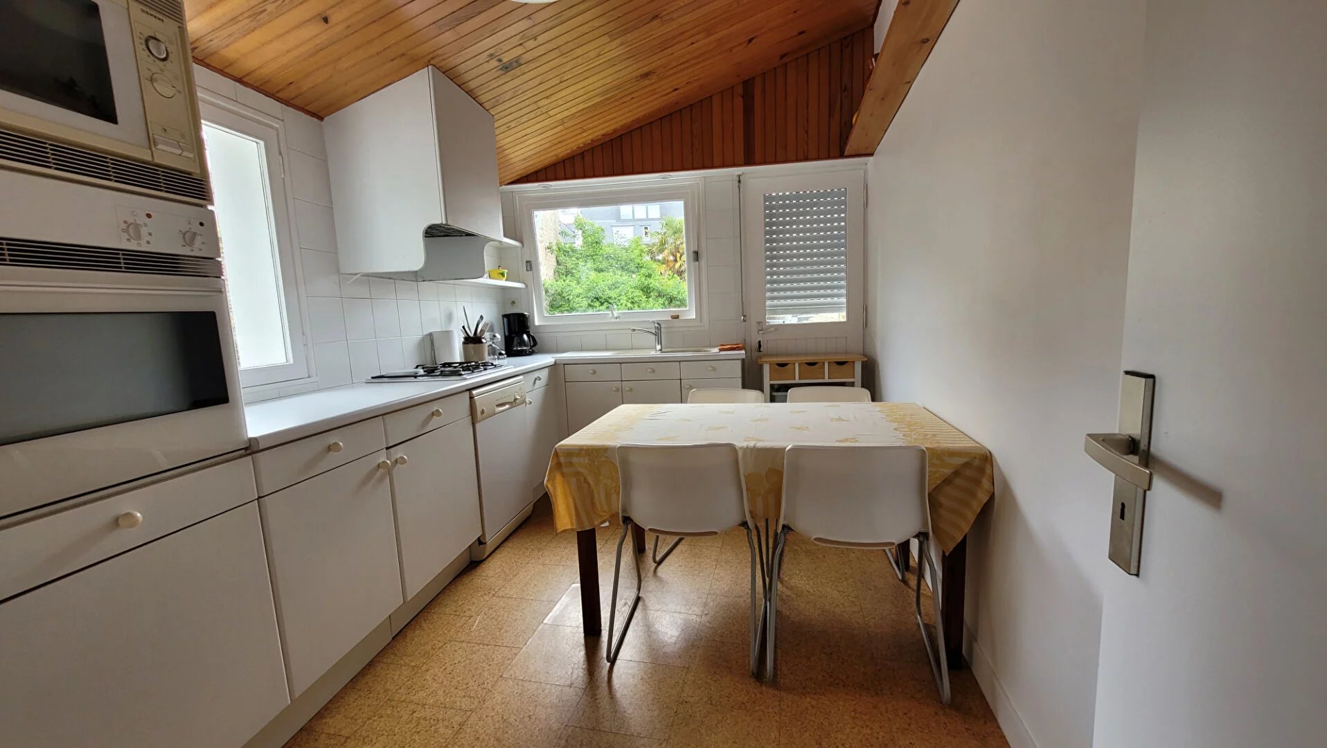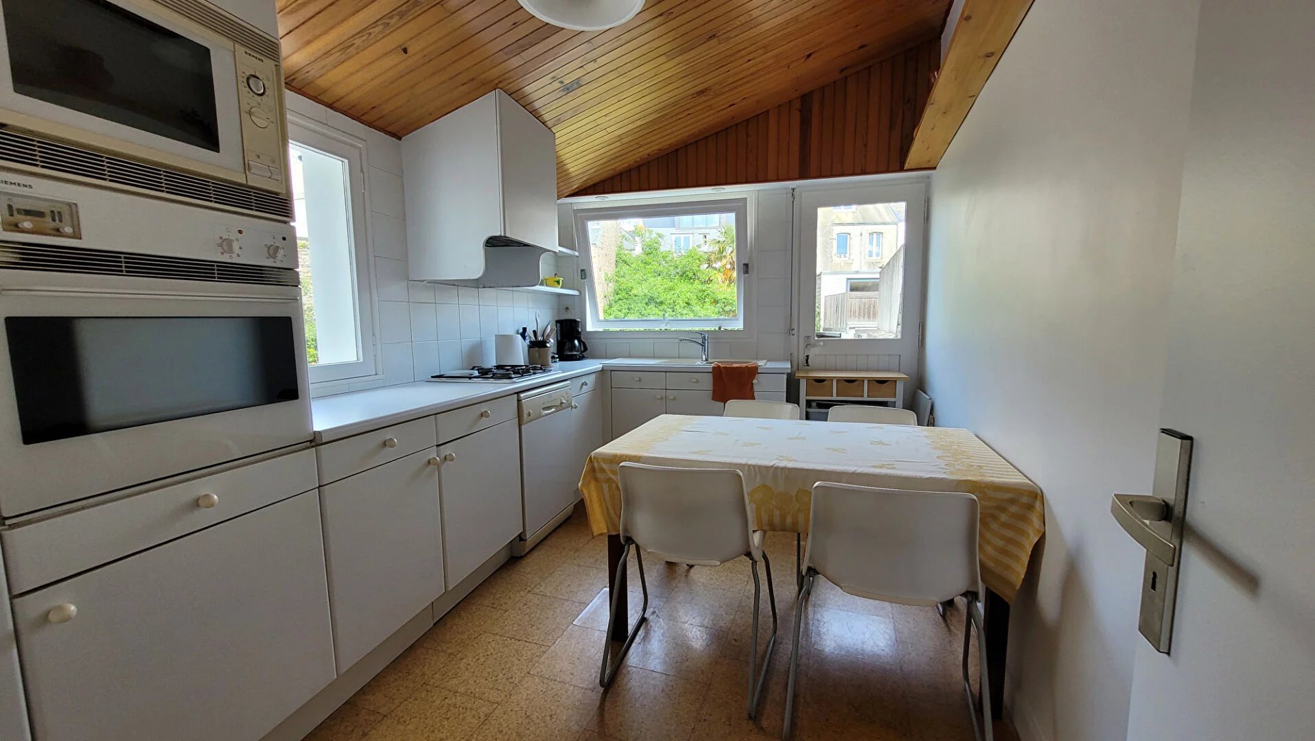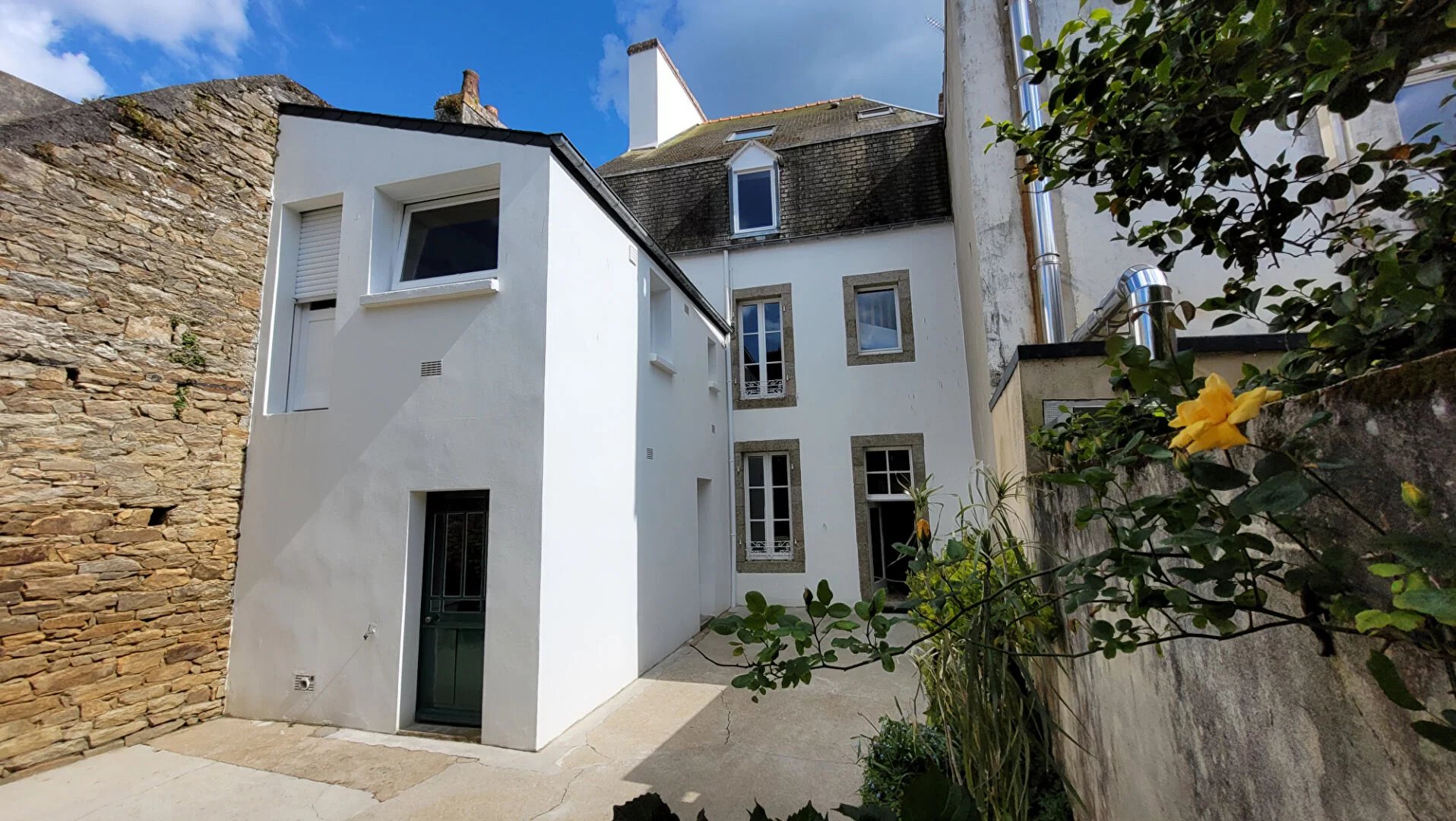 Au Coeur de la Ville et face à la VILLE-CLOSE et au PORT de PLAISANCE, cette belle demeure typique du centre-ville concarnois offre, outre son jardin clos de murets en pierres, des volumes de vie et une luminosité rares à cet emplacement. Disposant d'un ancien cabinet médical au RDC, elle pourrait accueillir toute sorte de profession libérale. Au &1er, Salon-Séjour donnant au Sud sur le balcon et le Port de Plaisance, Salle à manger et Cuisine donnant sur le jardin. 2 grandes chambres et 1 Salle de bains à l'étage supérieur et 2 Chambres et 1 Salle d'eau au dernier étage.