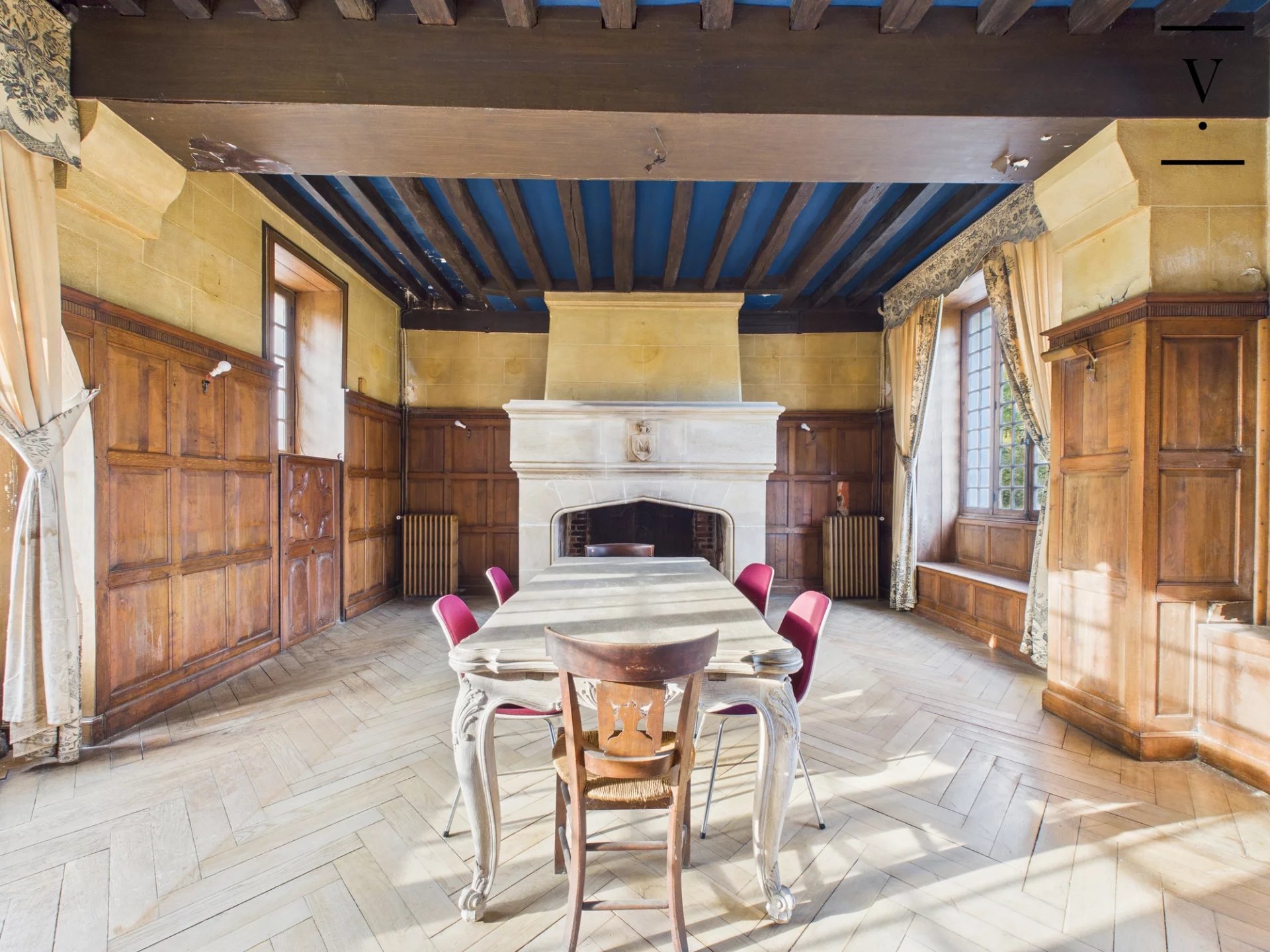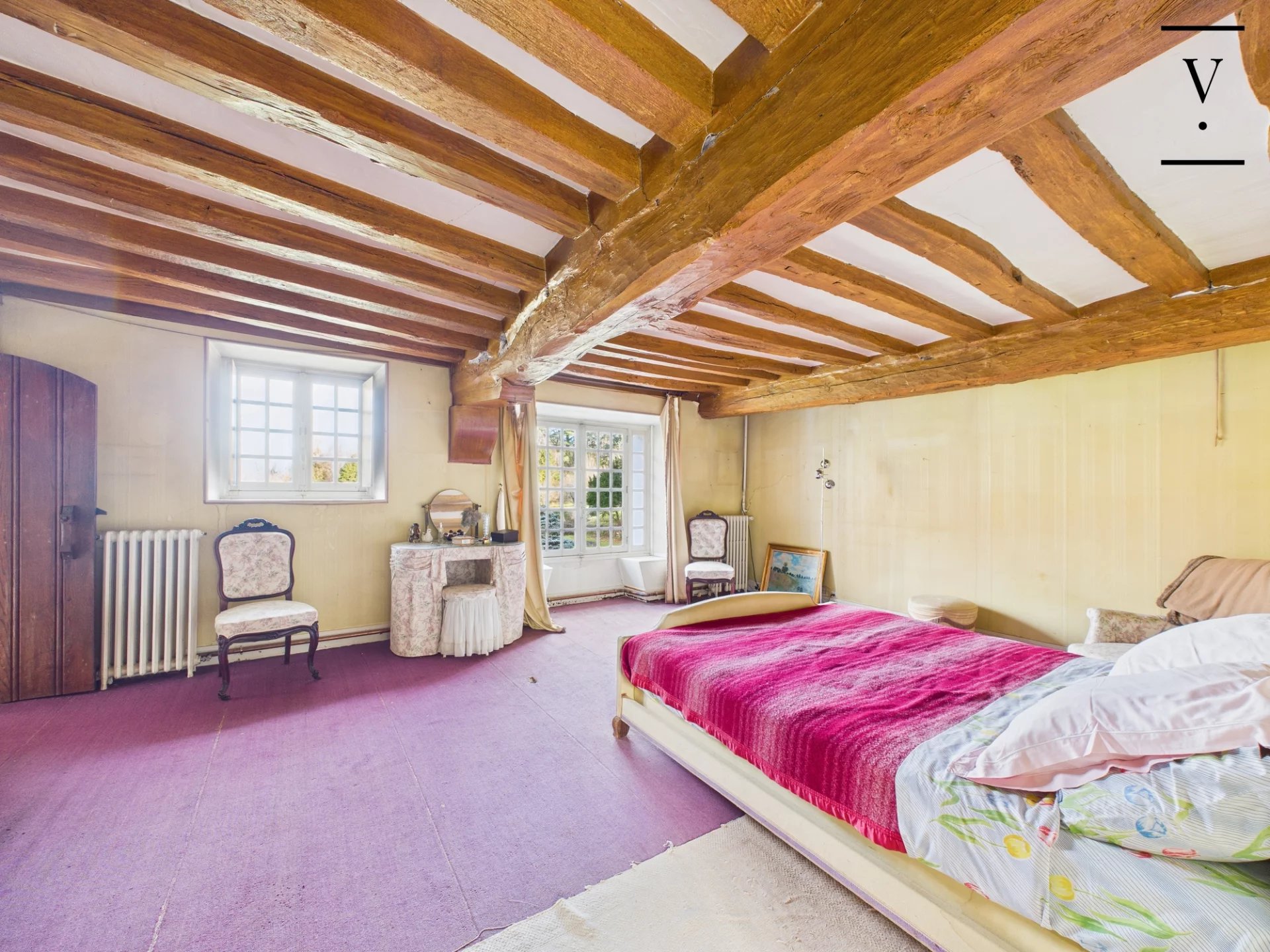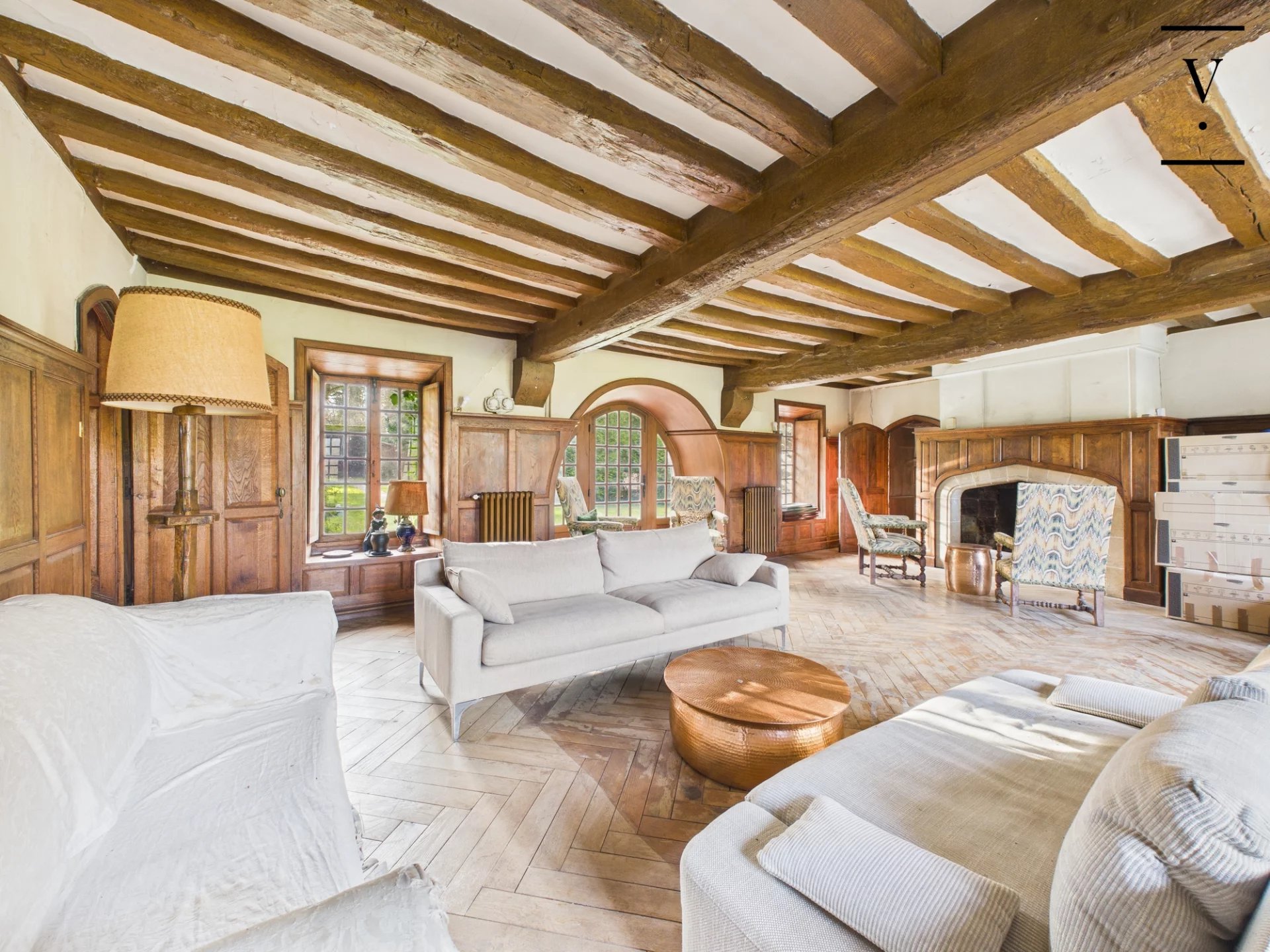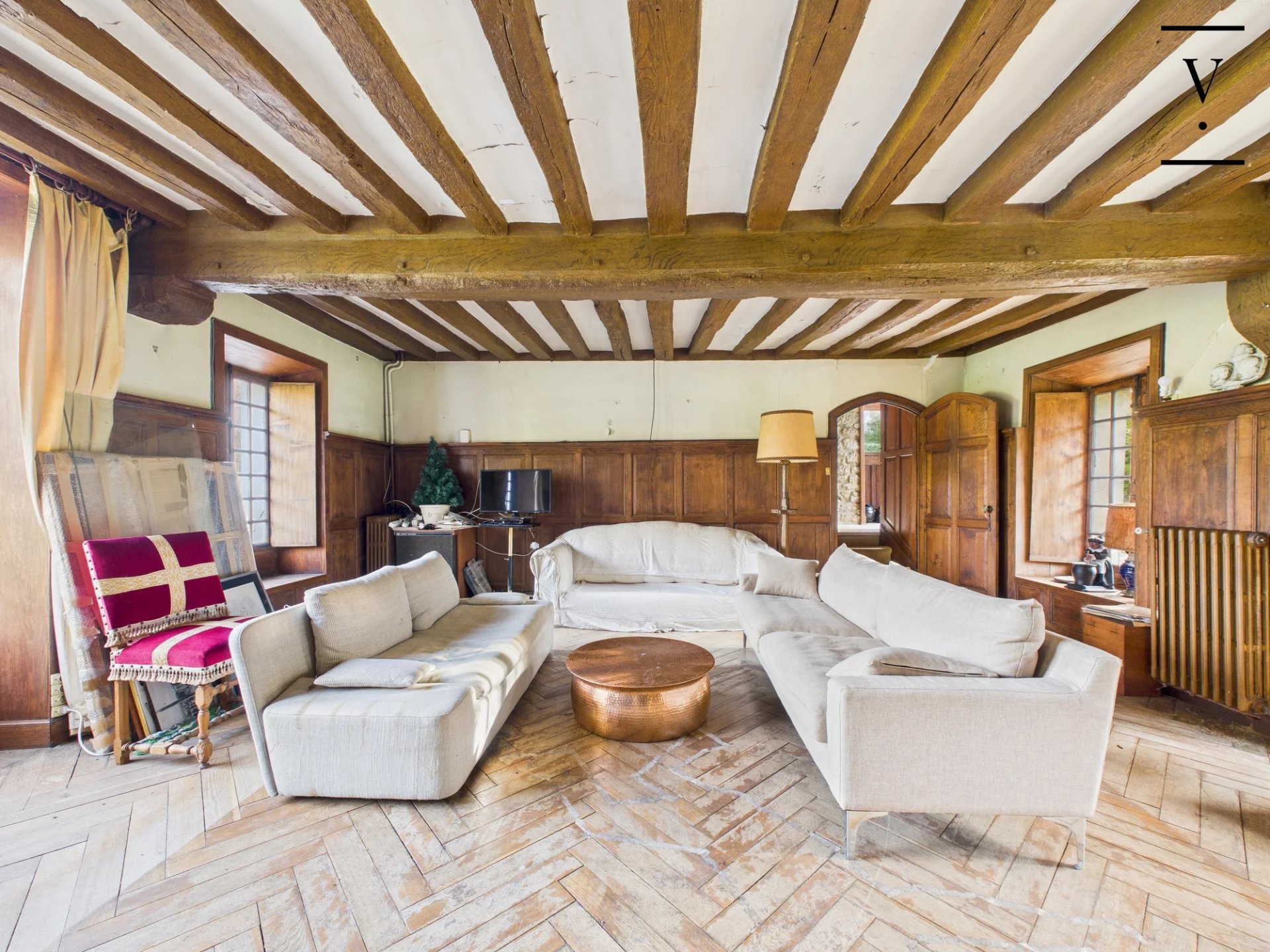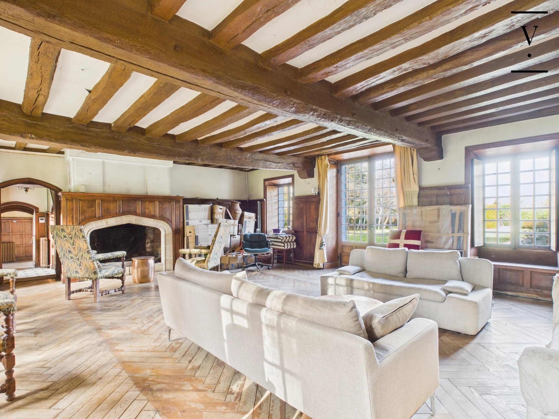 La demeure principale développe environ 360 m² habitables et offre une distribution élégante : belles pièces de réception, cuisine, puis 5 chambres, 3 salles de bains et 3 WC, complétées par deux espaces bureau sous combles. Le charme opère à chaque instant avec ses cheminées, poutres apparentes, parquets et tomettes.