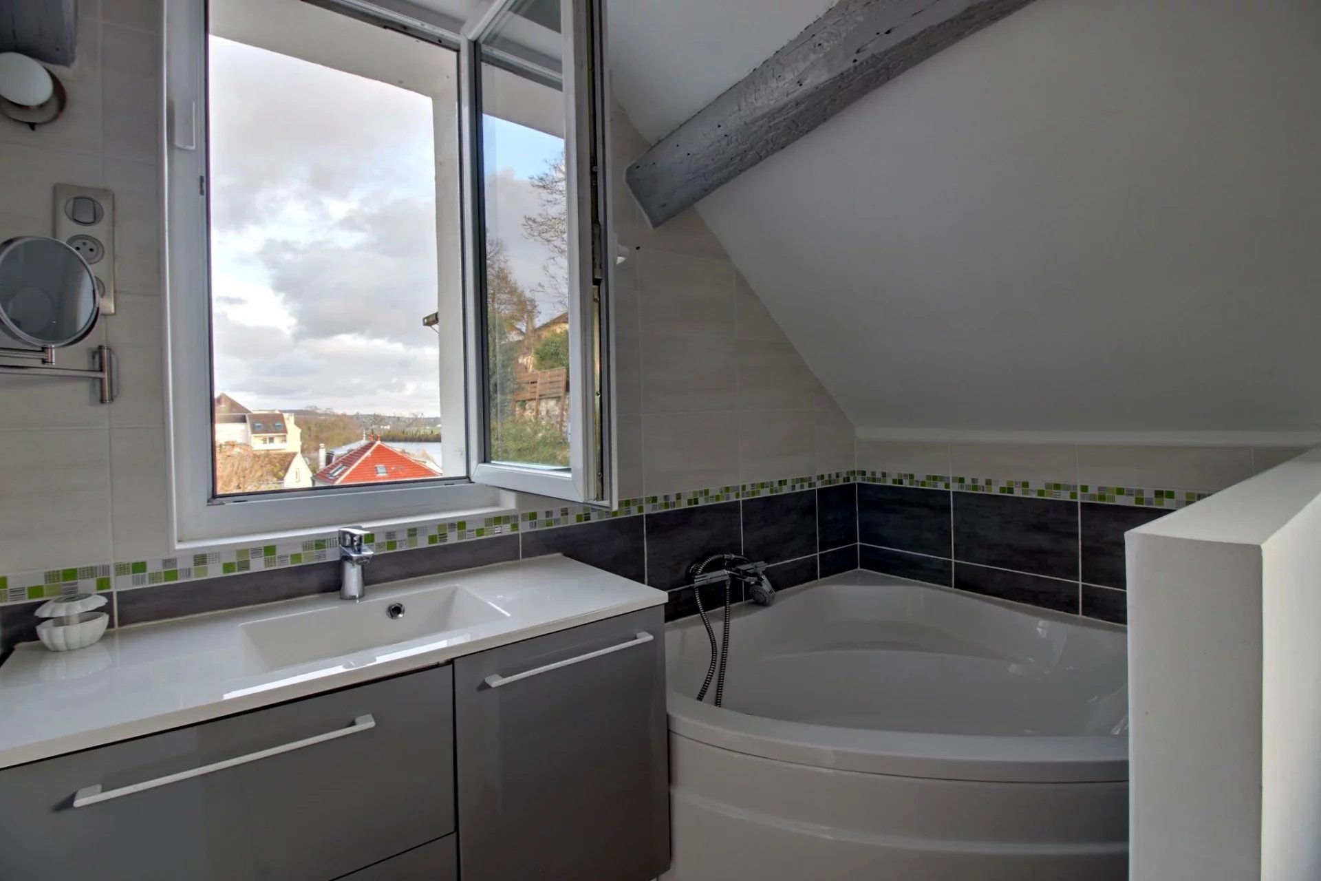 378 900 €. **Maison COUP DE COEUR** Un refuge de tranquillité au cœur de la ville ! **CENTRE VILLE HISTORIQUE** Au pied du PARC DU PRIEURE, des QUAIS DE SEINE, de la GARE SNCF ligne J transition Ligne RER A et L et à proximité de toutes les écoles (maternelle, primaire, collège et lycée) Belle maison sur **SOUS SOL TOTAL** Bénéficiant de 2 accès! Elle comprend en REZ-DE-CHAUSSEE : Un Bureau, une chambre, et une SUITE PARENTALE avec WC, TOUTES donnant accès à un grand BALCON. Au PREMIER ÉTAGE : Un LUMINEUX SÉJOUR DOUBLE CATHÉDRALE, une cuisine MODERNE TOTALEMENT ÉQUIPÉE ! Un dégagement avec RANGEMENTS et des WC. - Au DEUXIEME ÉTAGE : Une pièce palière avec ses POUTRES APPARENTES, un dégagement avec une vue PLONGEANTE sur la pièce de vie, et une SUITE PARENTALE avec WC. Toutes les pièces ont une vue IMPRENABLE sur Seine. Deux grandes caves, une chaufferie et buanderie. STATIONNEMENTS dans le jardin ! Ne tardez plus, visiter avec votre conseiller **LA RESIDENCE** 01 39 72 00 20 ! .