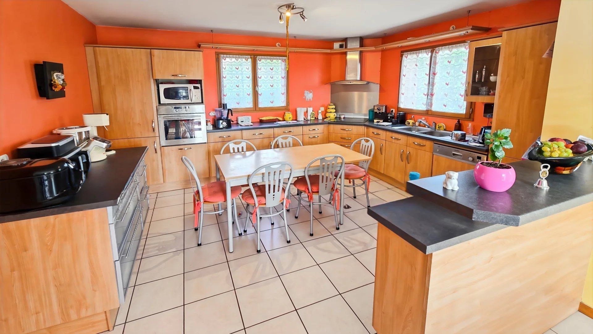 En sous-sol, profitez d’un double garage et de nombreuses annexes, cellier, cave, buanderie, atelier pour les adeptes du bricolages, offre un rangement optimal.